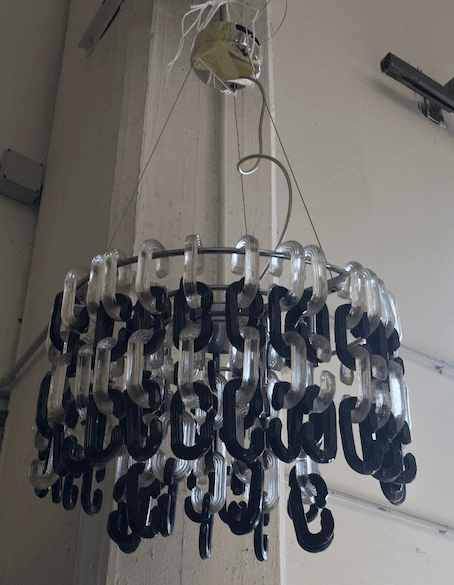 Lampada A Sospensione In Vetro E Metallo Con Tre Applique Coordinate