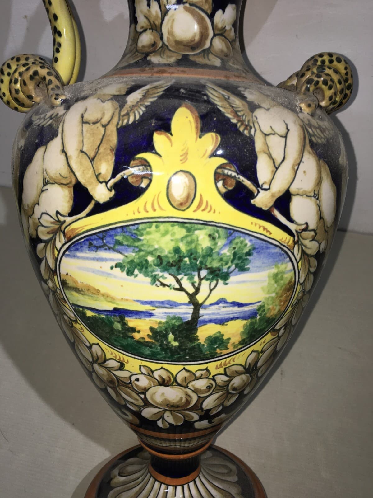 Ceramica Decorativa: Anfora Con Paesaggio E Angeli, Barraud Messeri (Bmc), Sesto Fiorentino