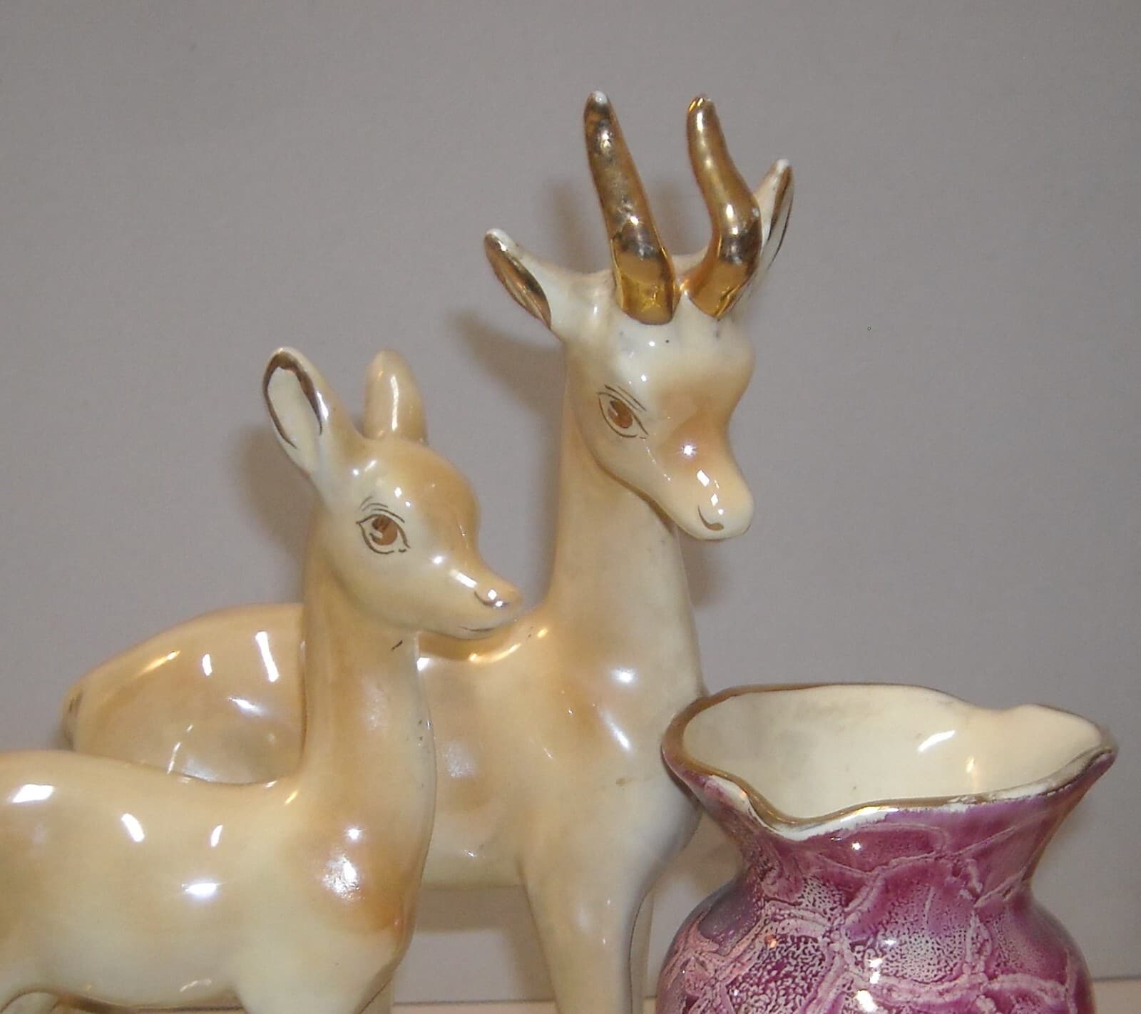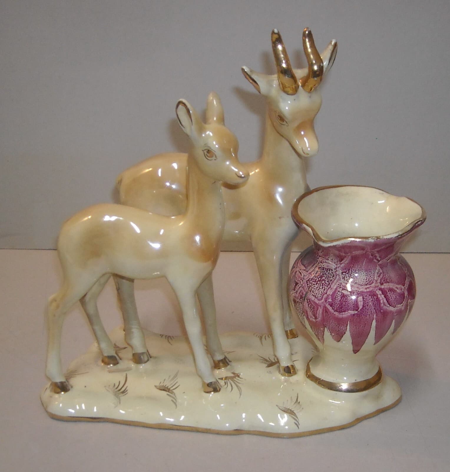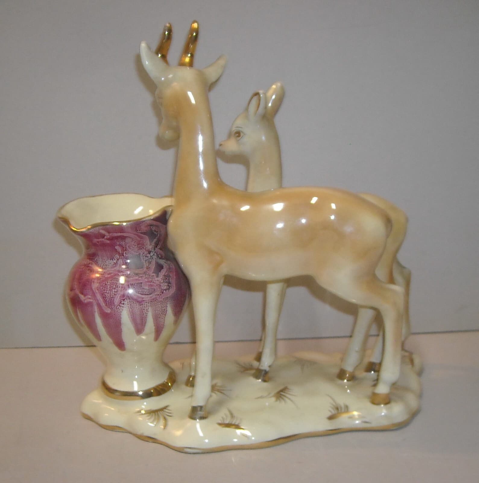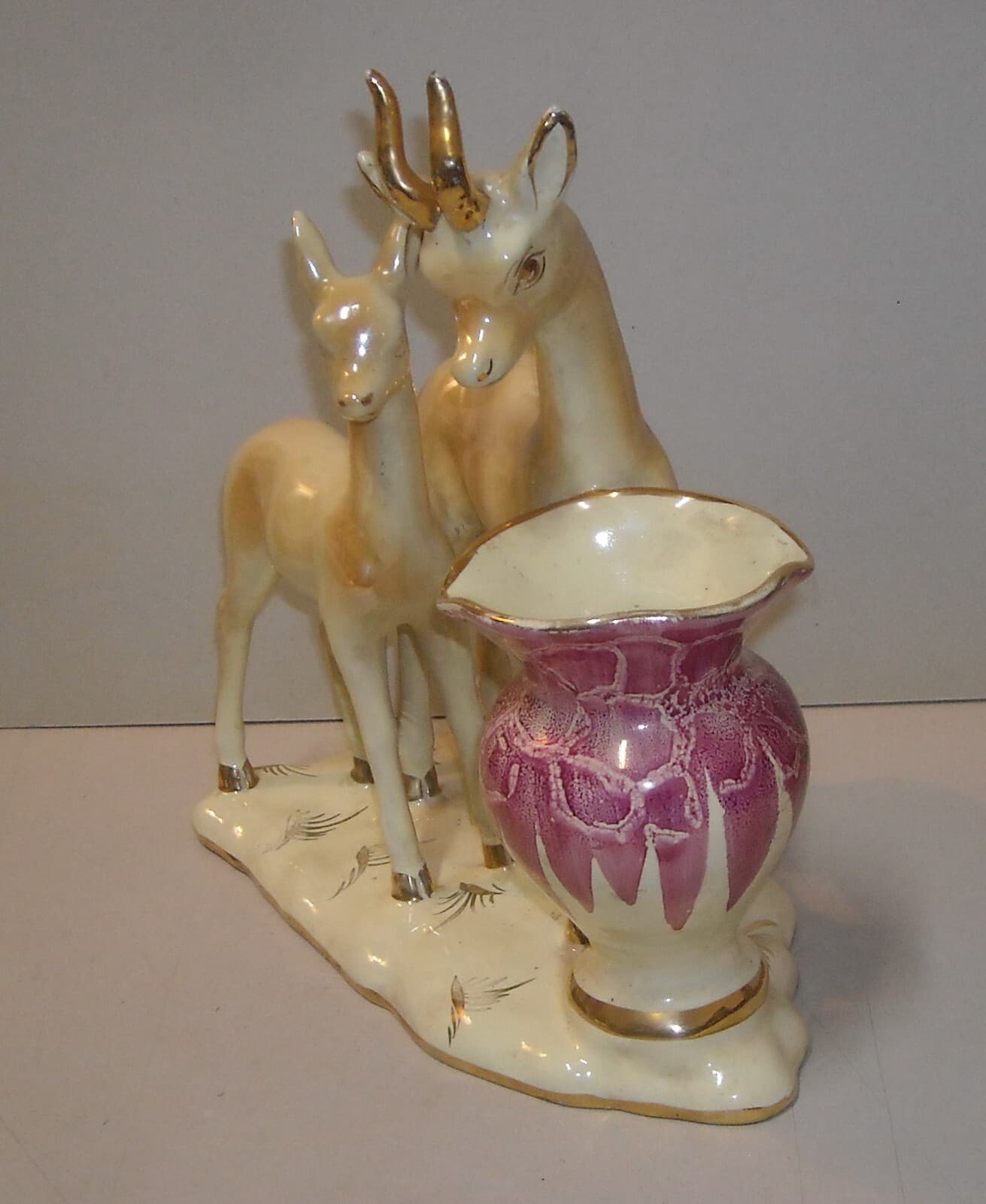 Cerbiatti Con Vaso Portafiori. Scultura In Ceramica Policroma
