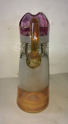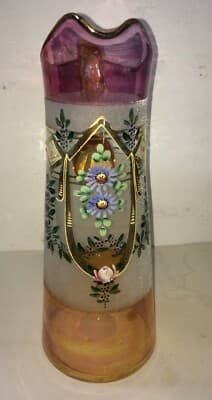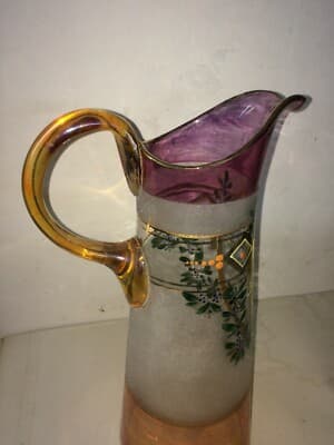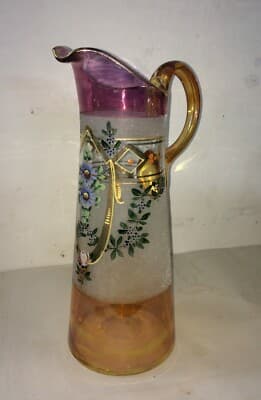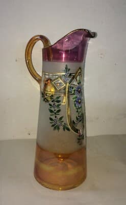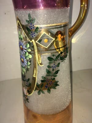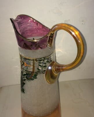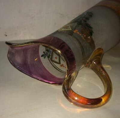 Caraffa Liberty In Vetro Soffiato Con Decori Floreali E Dorature