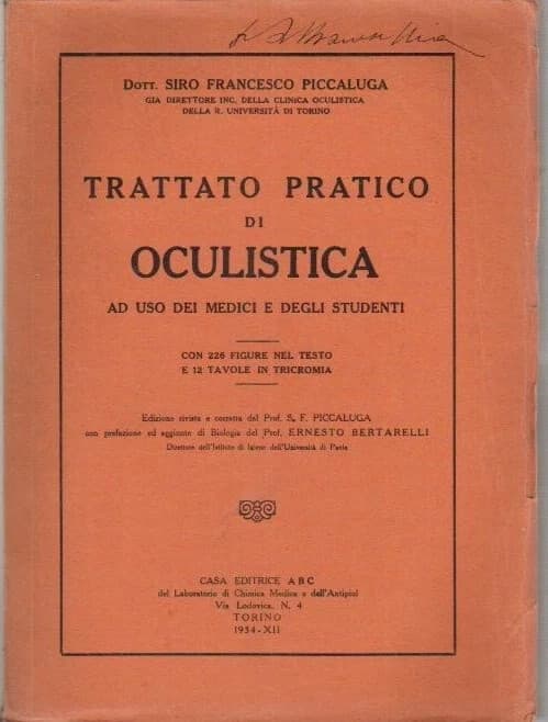 Trattato Pratico Di Oculistica Siro Francesco Piccaluga 1934