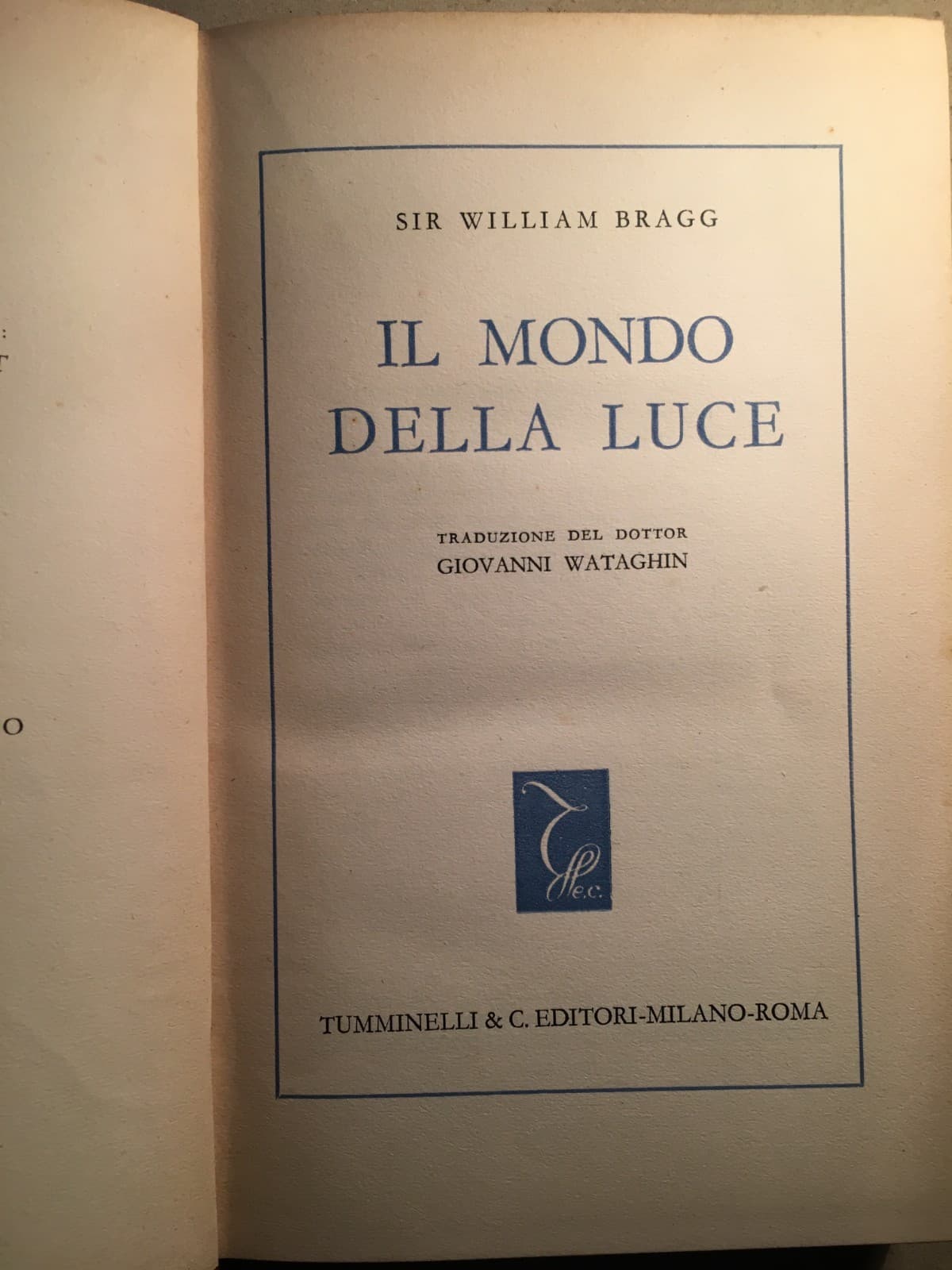 Il Mondo Della Luce: Fisica, Ottica, Occhio E Colori Di William Bragg (1935)
