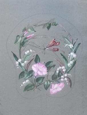 Botanica: Fiori, Dipinto Floreale Decorativo, Schizzo Per Ventaglio, 1900