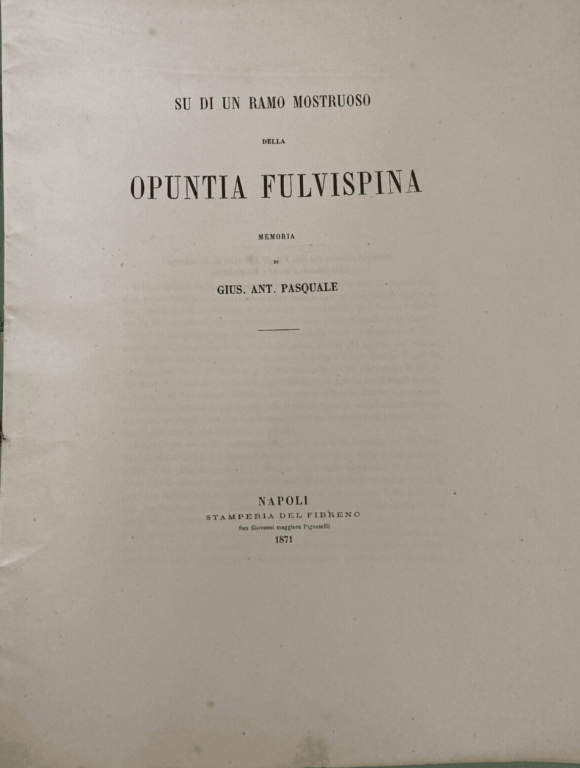 Su Di Un Ramo Mostruoso Della Opuntia Fulvispina Giuseppe Antonio Pasquale, 1871