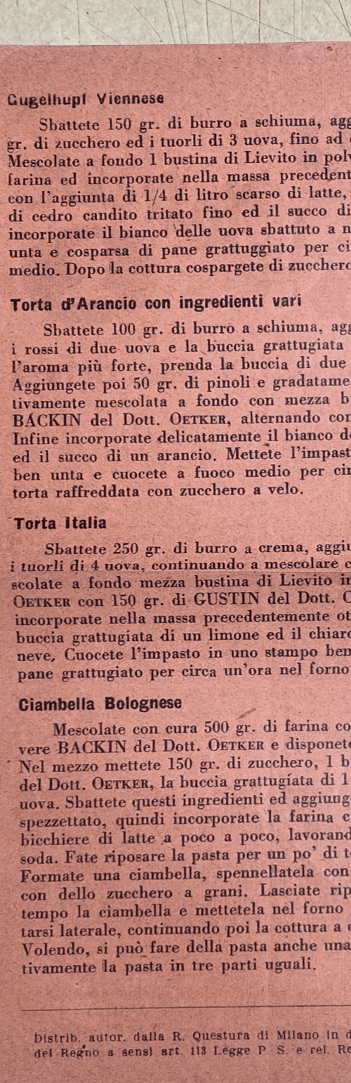 Alimentazione, Cucina, Lievito Backin, Dr. Oetker, Volantino Pubblicitario, Ricette