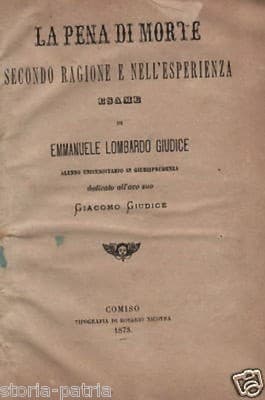 La Pena Di Morte Secondo Ragione E Nell'Esperienza. Emmanuele Lombardo Giudice, Comiso, 1873.
