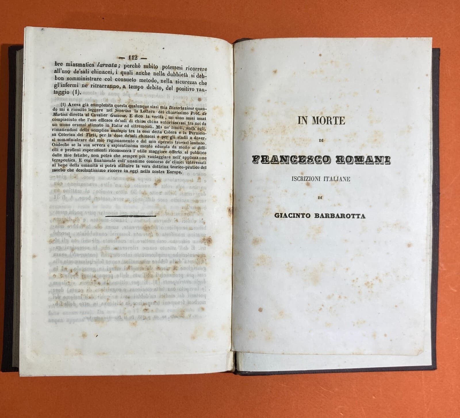 Medicina: Febbri Perniciose, Colera E Casi Clinici A Vasto (Abruzzo). Opere Di Giacinto Barbarotta, 1856 1858