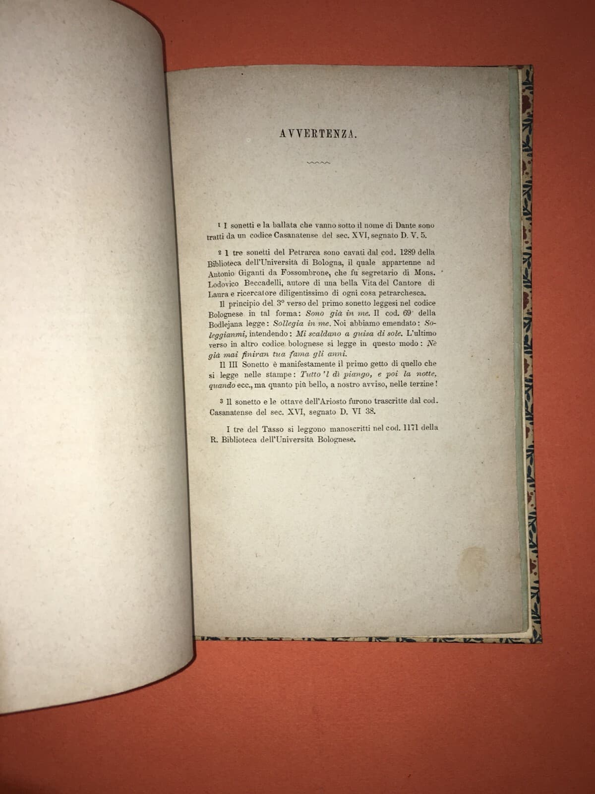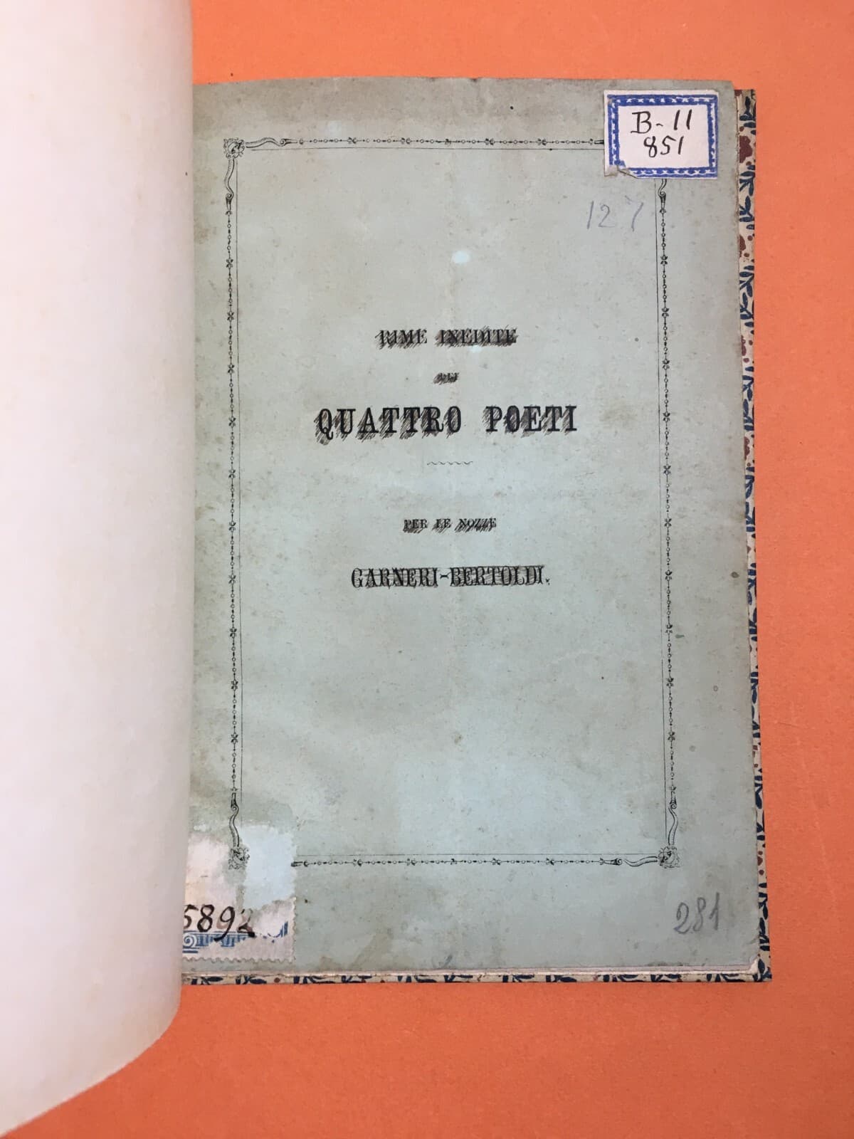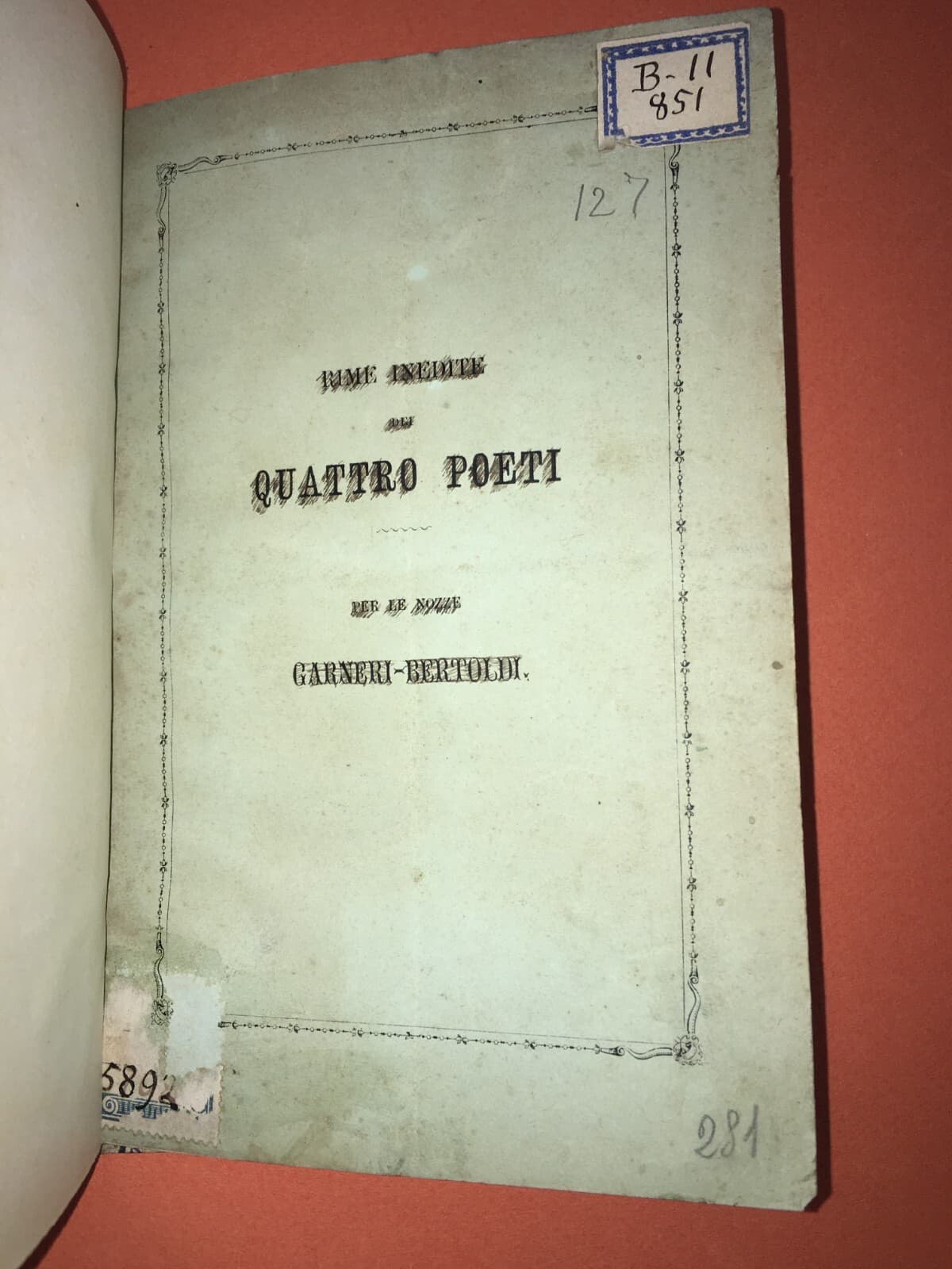 Antica Edizione Per Nozze Garneri Bertoldi, A Cura Di Domenico Carbone, 1872