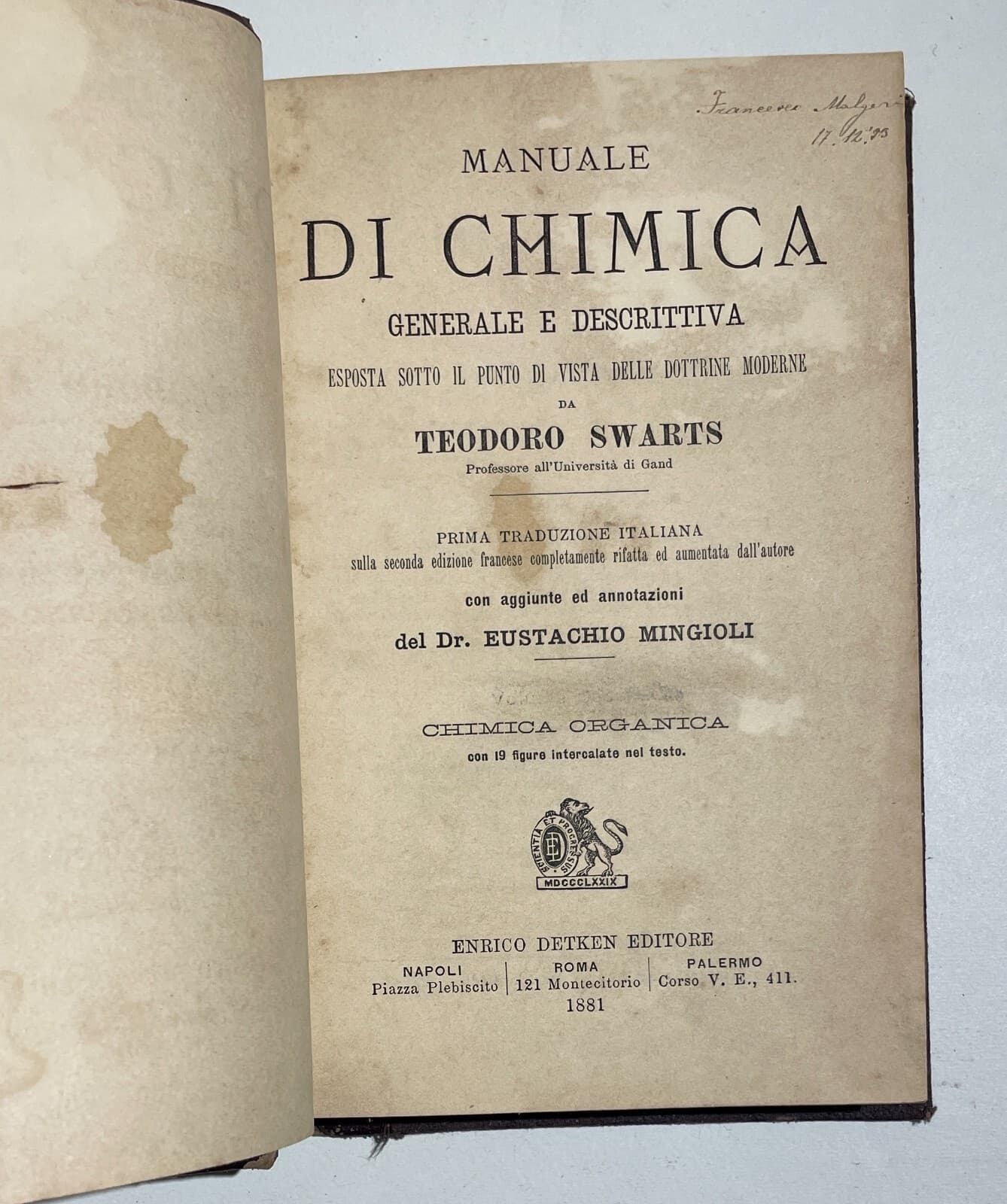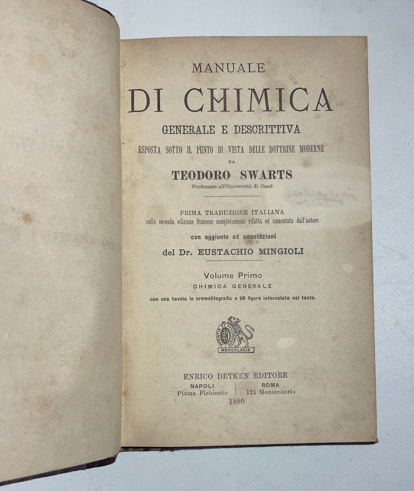 Chimica Antico Manuale Swarts Mingioli 1880 Due Volumi Con Figure Nel Testo