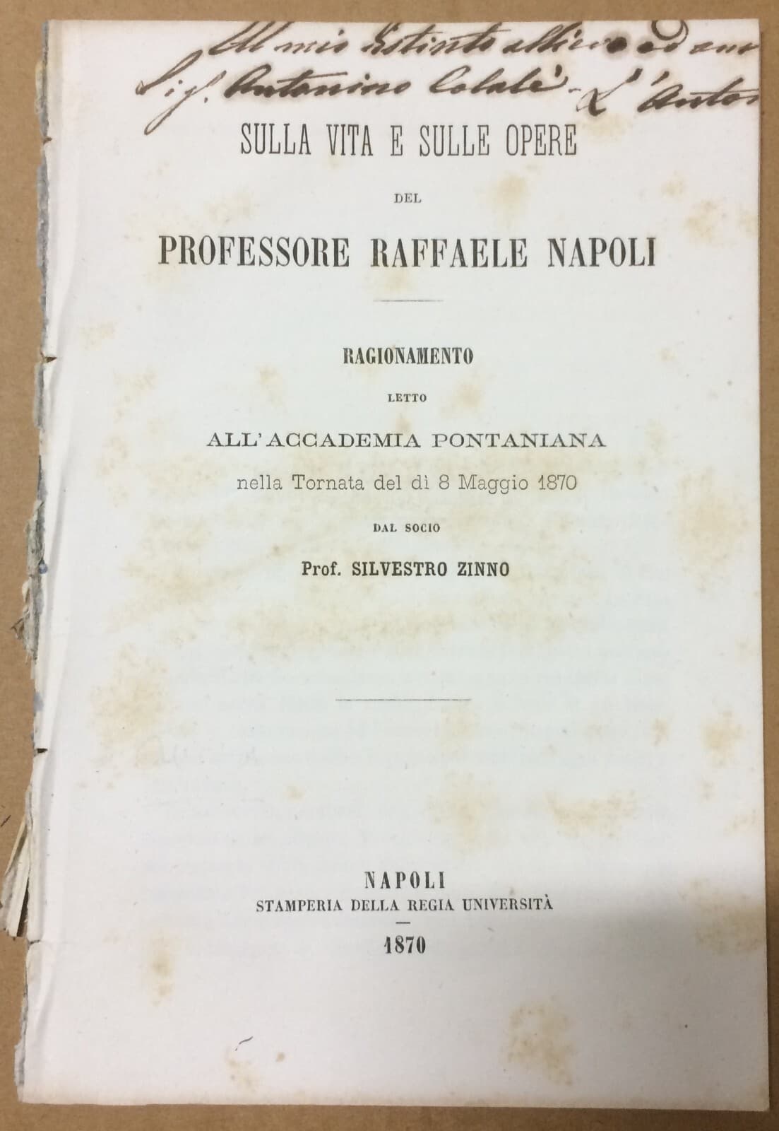 Chimica: Vita E Opere Di Raffaele Napoli Silvestro Zinno (1870)