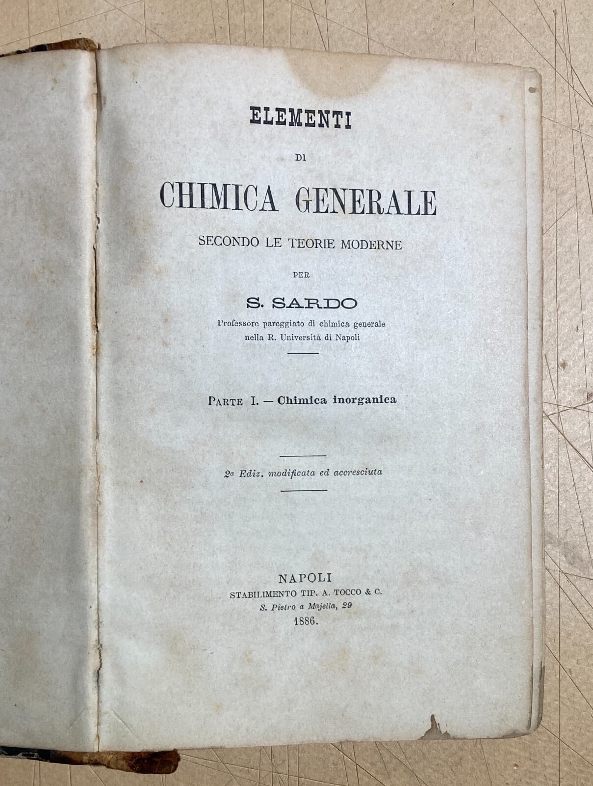 Elementi Di Chimica Generale Secondo Le Teorie Moderne S. Sardo 1886