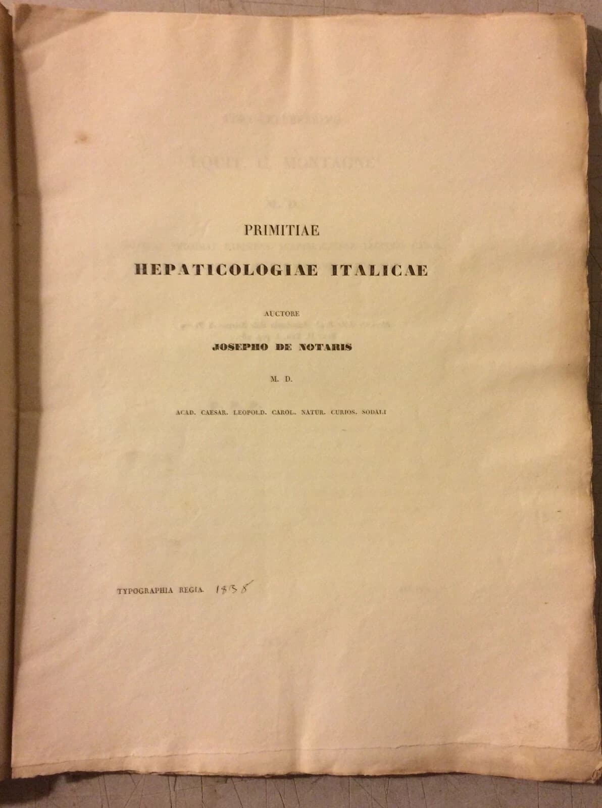 Giuseppe De Notaris, Primitiae Hepaticologiae Italicae, 1838