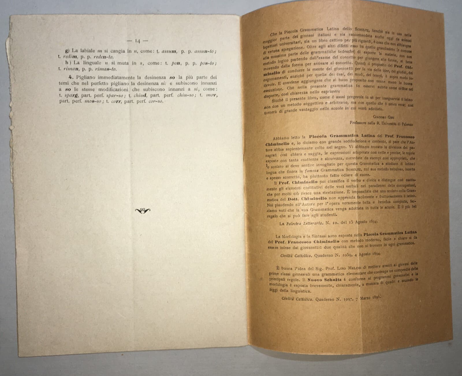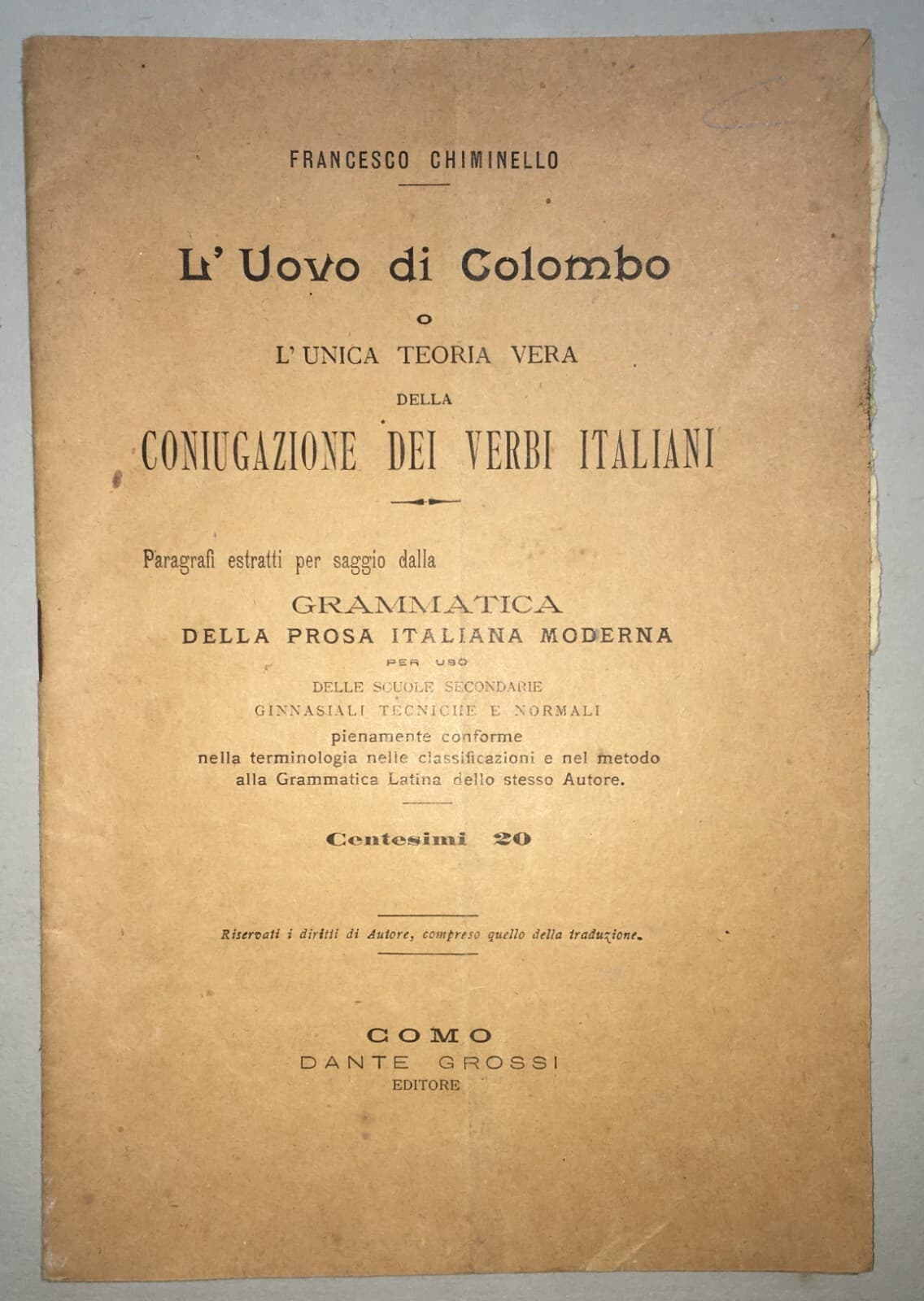 Pedagogia, Scuola E Grammatica: Verbi Italiani Chiminello Como Editore Grossi 1896