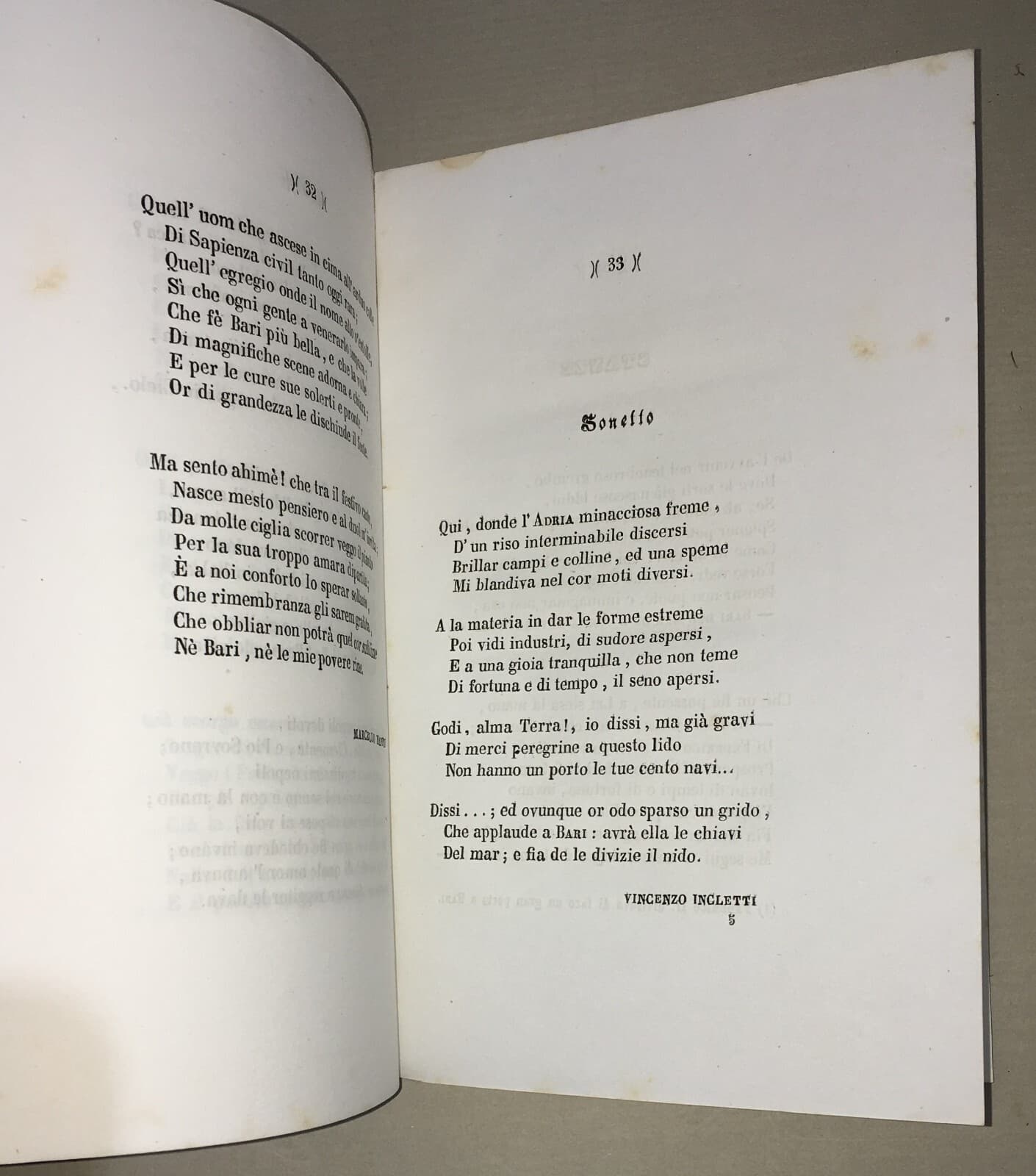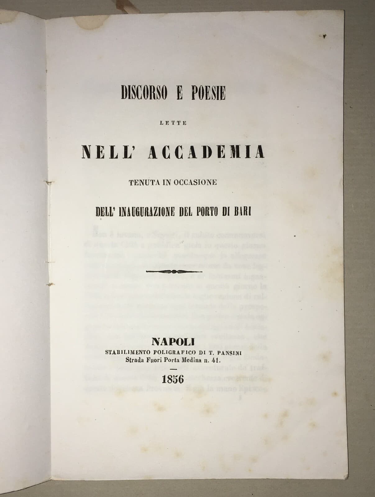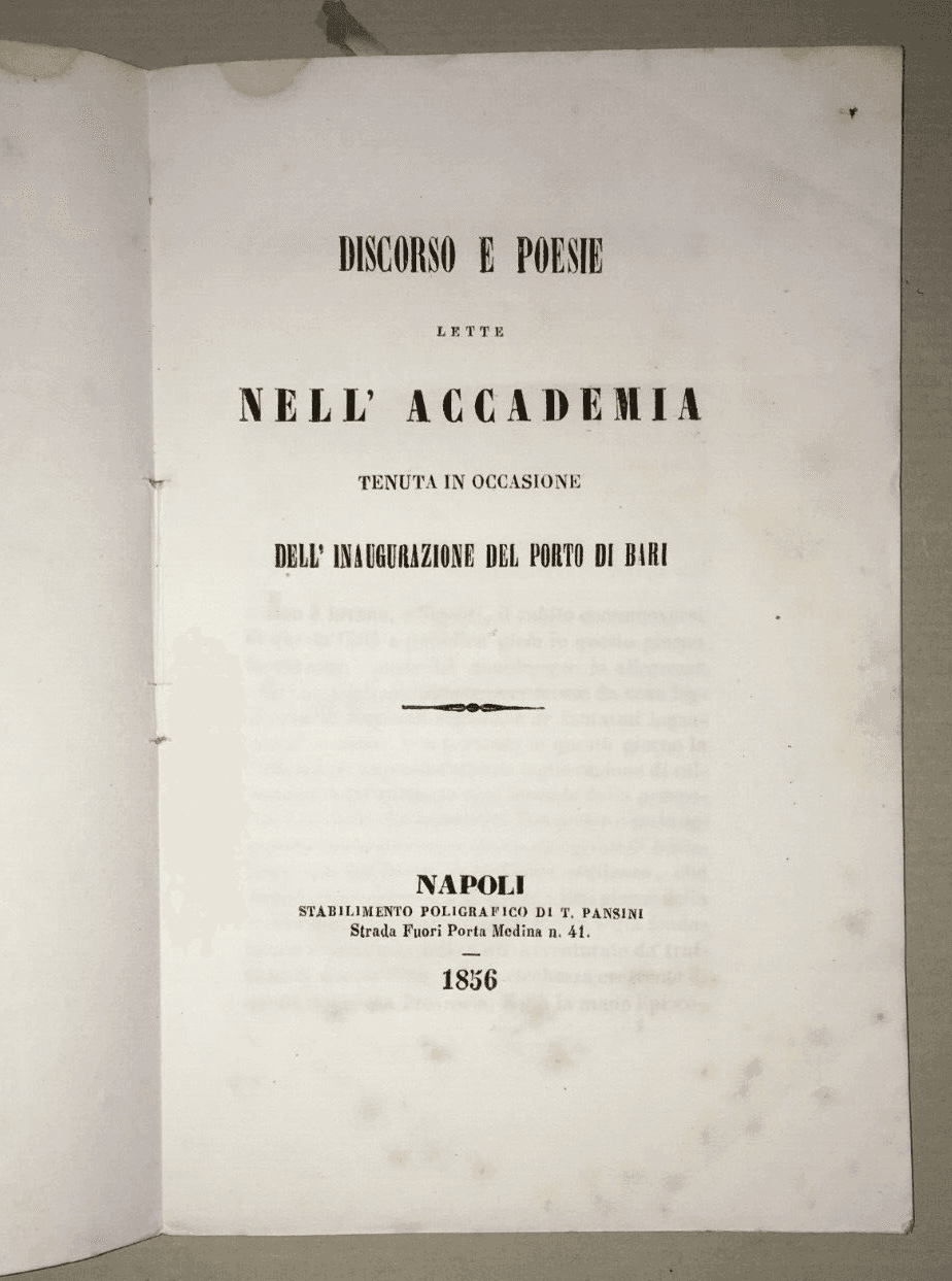 Puglia, Bari. Inaugurazione Del Porto: Discorsi E Poesie (1856)