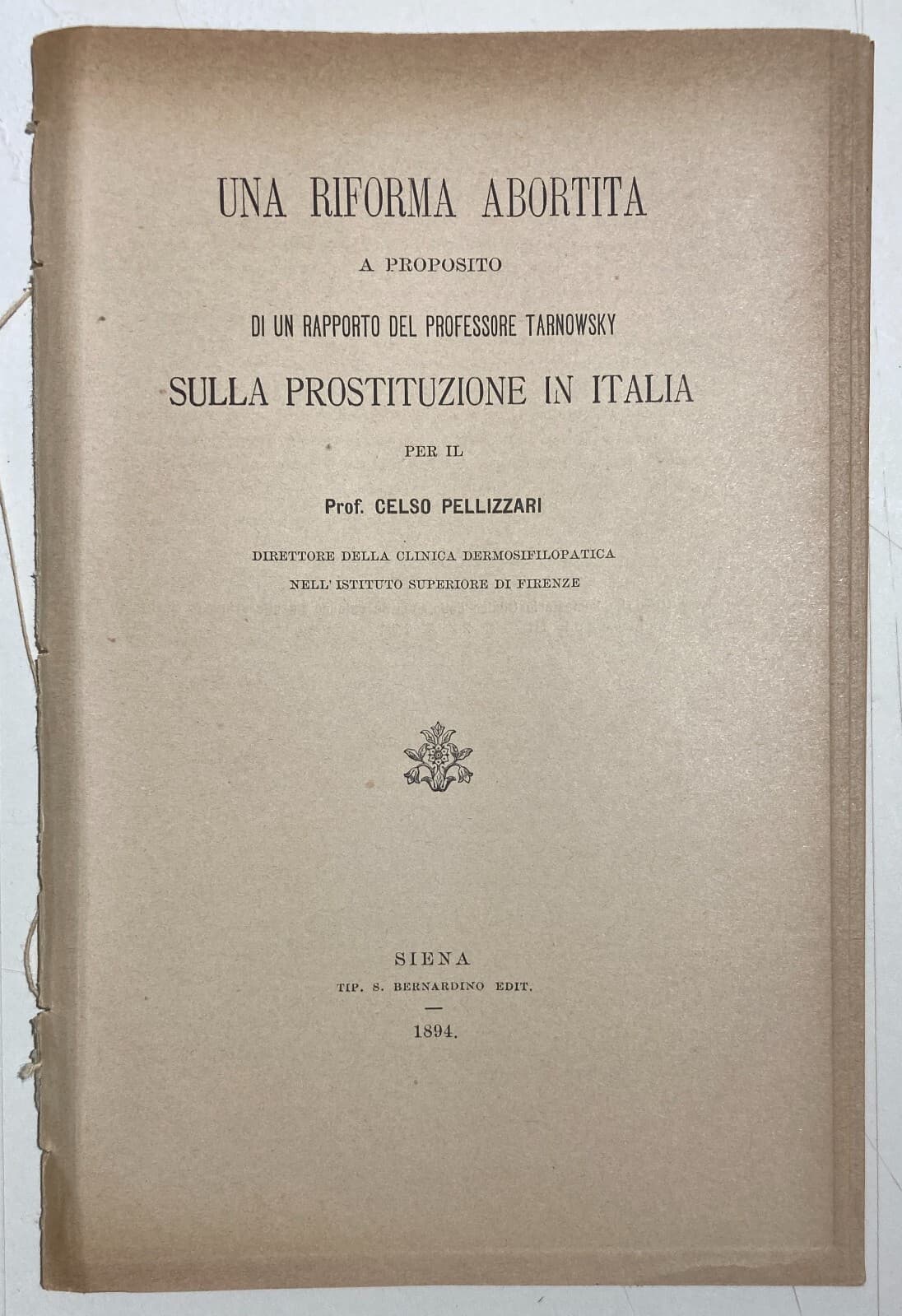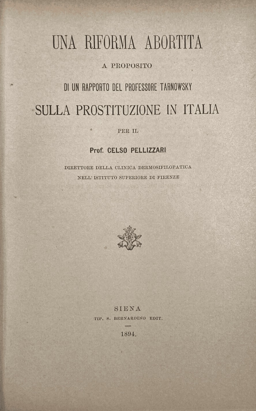 Prostituzione In Italia: Riforma Tarnowsky, Pellizzari, Titomanlio, Napoli, 1894