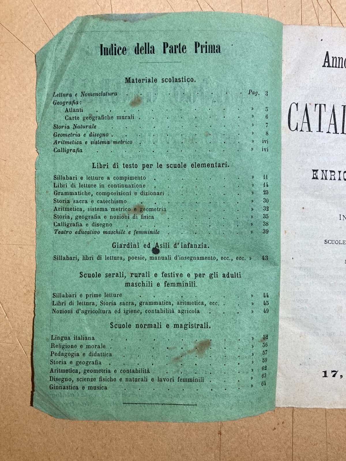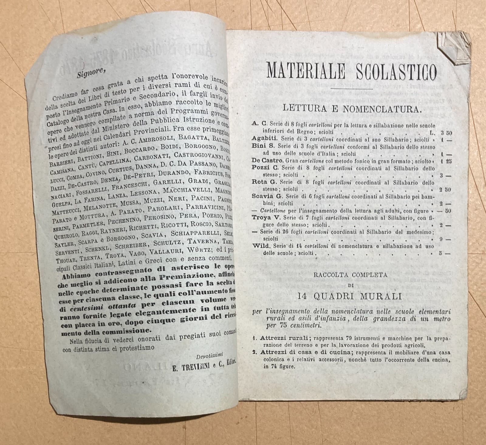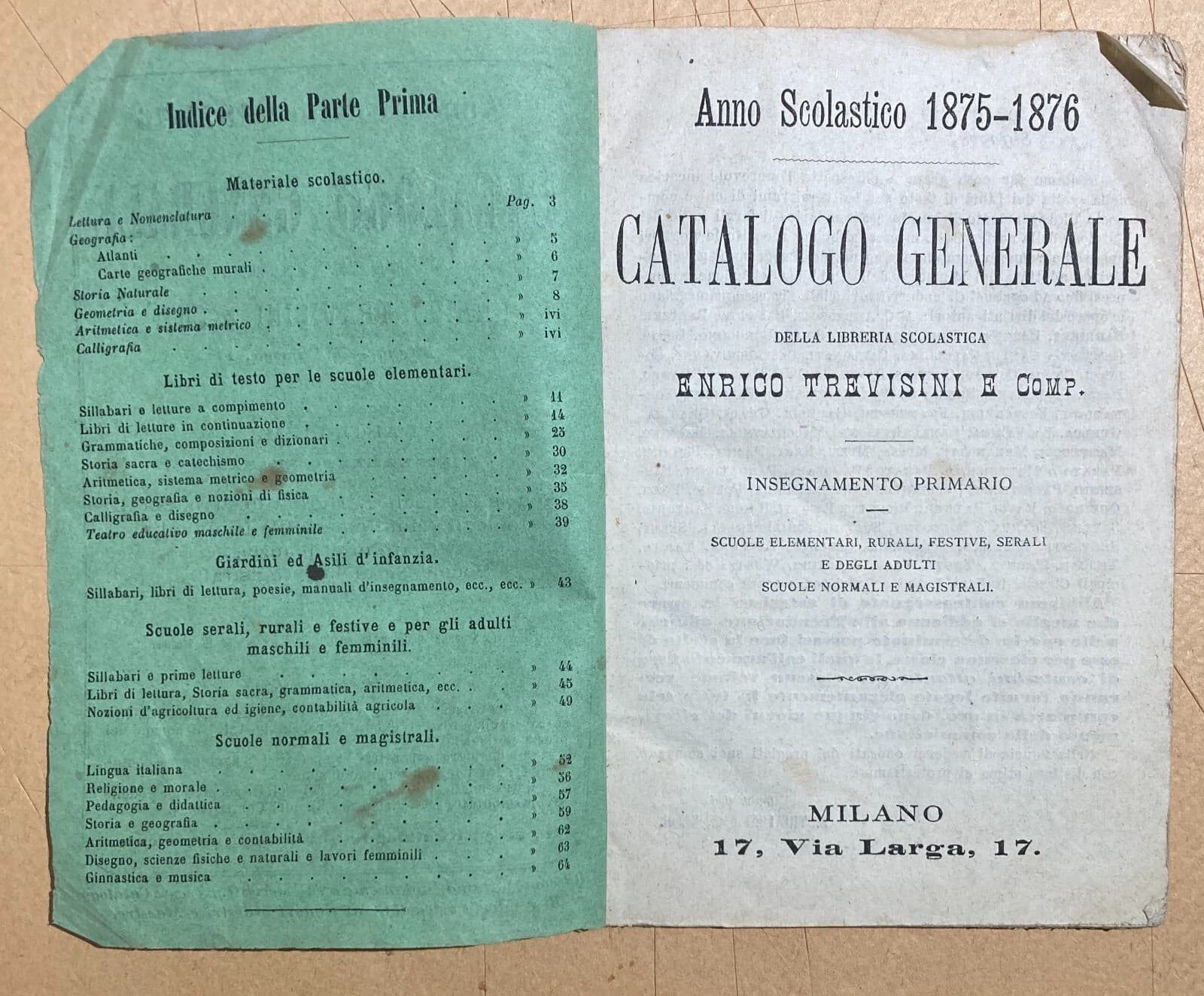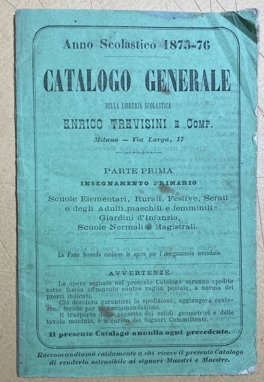 Catalogo Editoriale Libreria Scolastica Enrico Trevisini, Milano, 1875 76