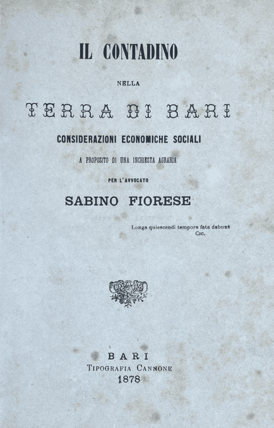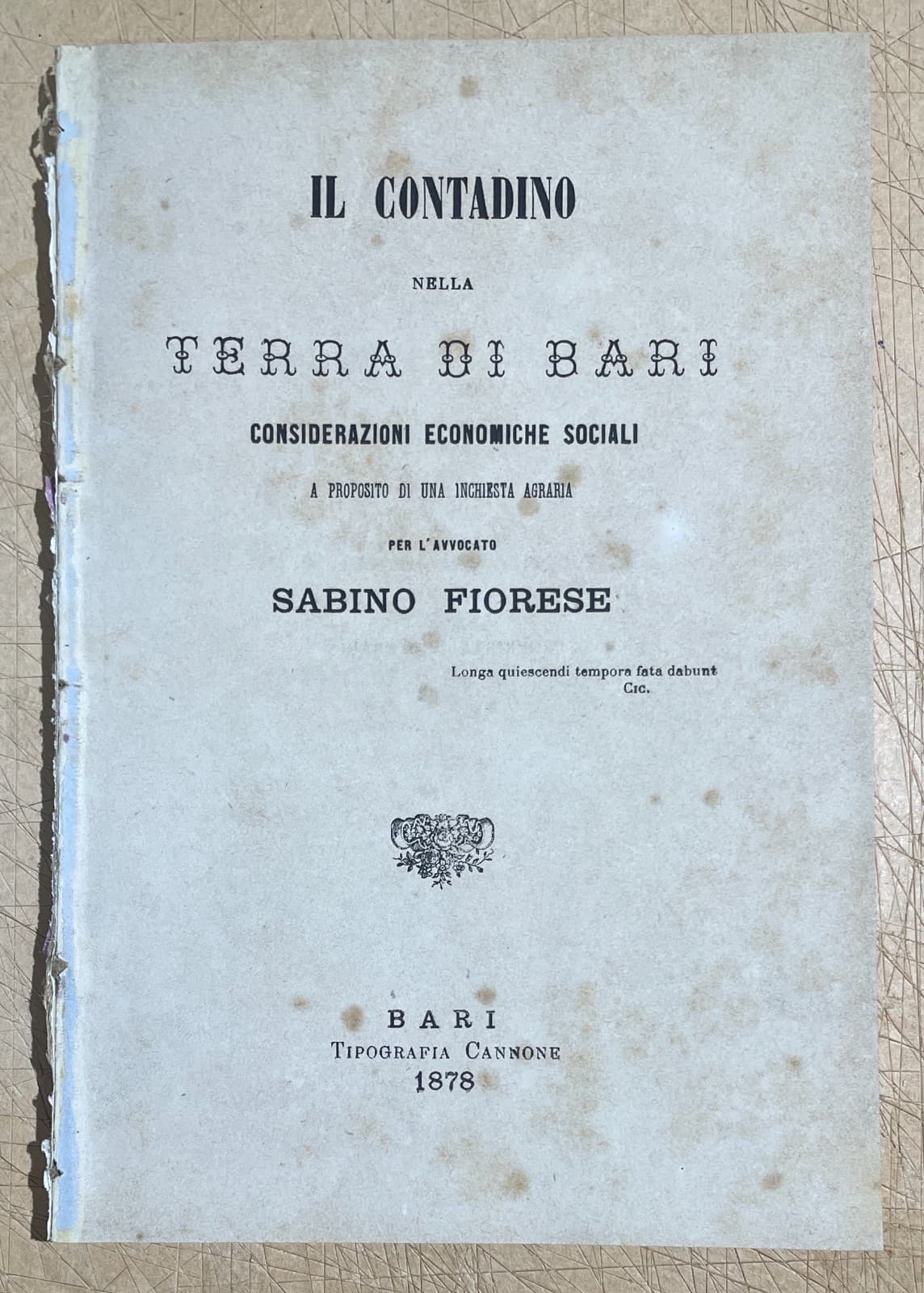 Puglia Bari Agricoltura. Il Contadino Nella Terra Di Bari Sabino Fiorese (1878)