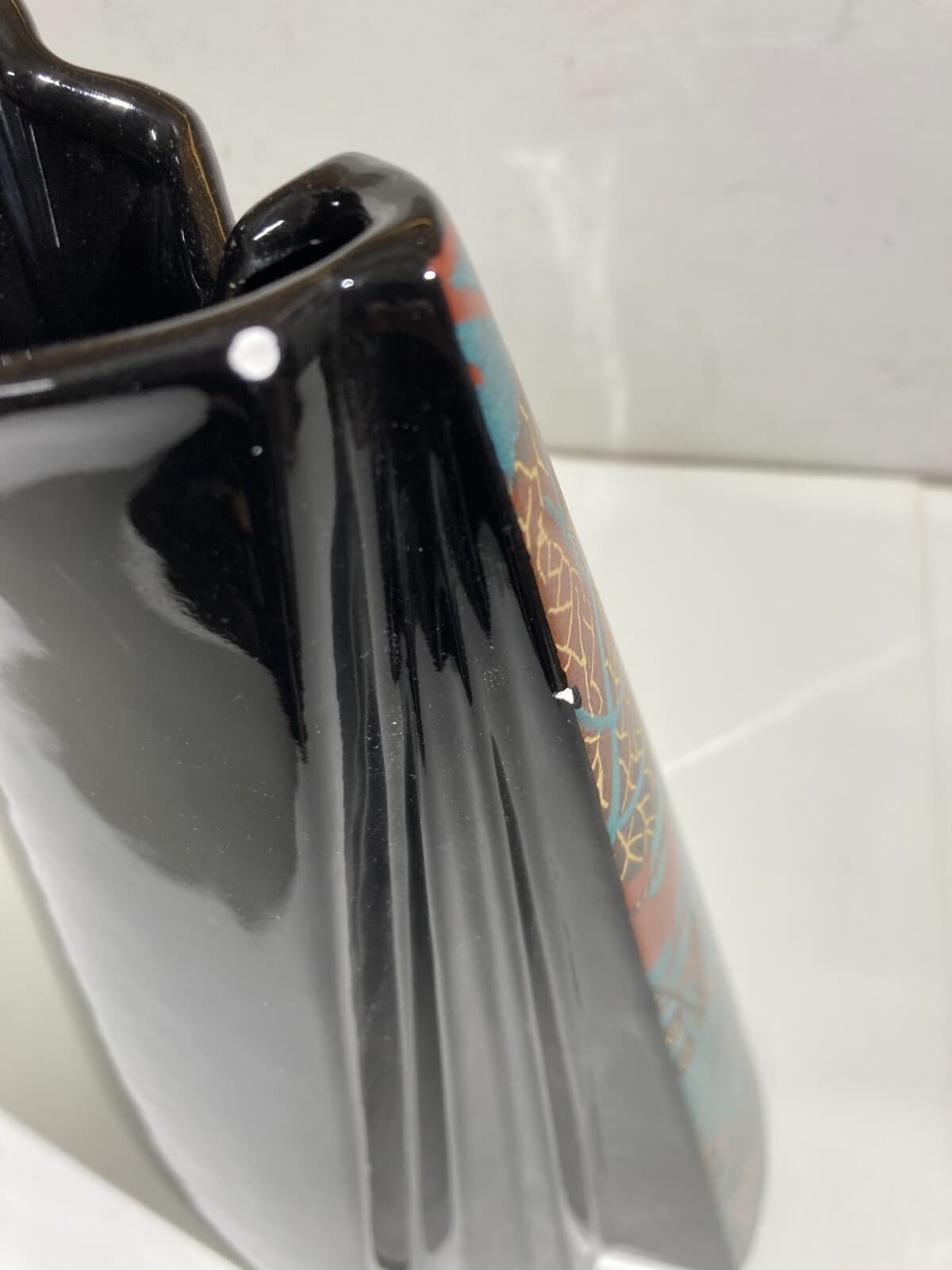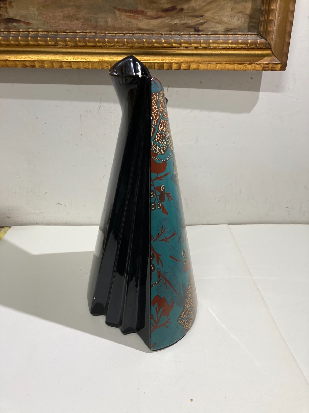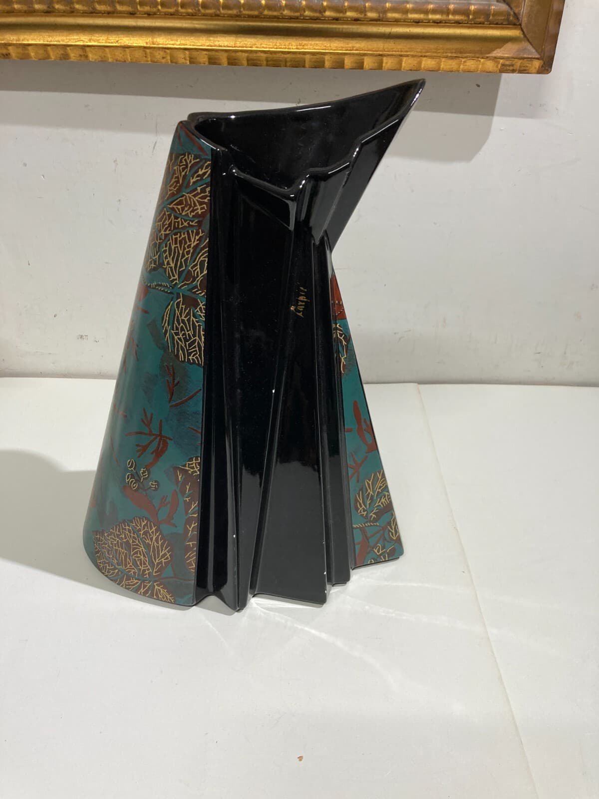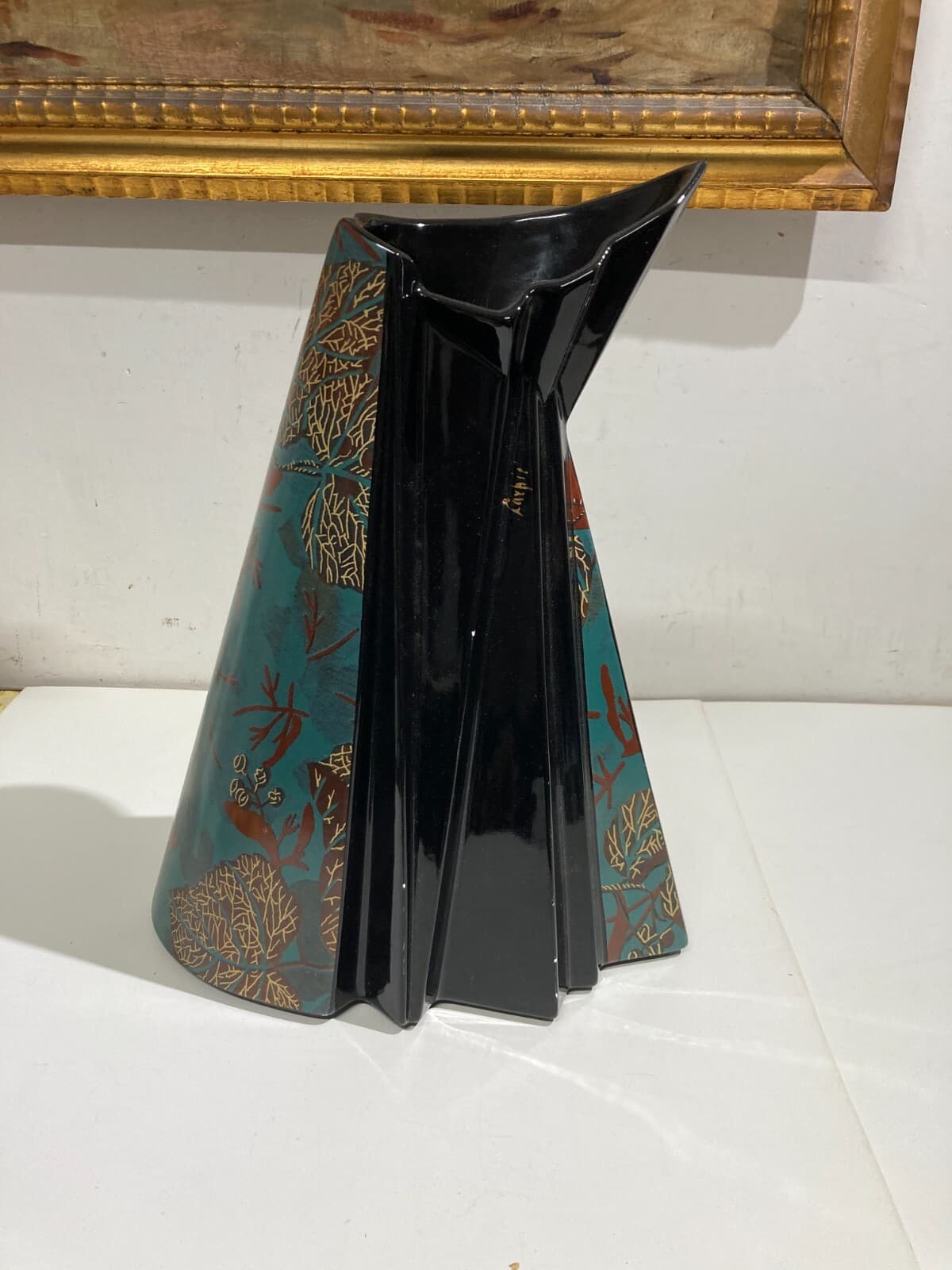 Vaso In Ceramica Carpiè Con Decoro Policromo