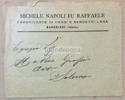 Salerno, Baronissi: Panni E Berretti Di Lana Busta Pubblicitaria Ditta Napoli