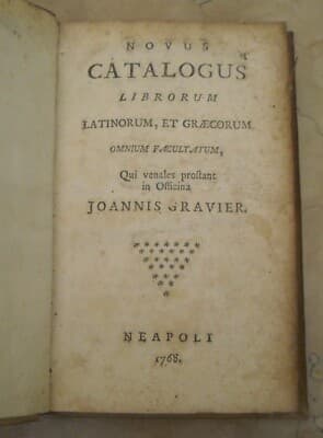 Bibliografia, Bibliofilia E Cataloghi Di Libri Antichi: Jean Gravier, Napoli 1768