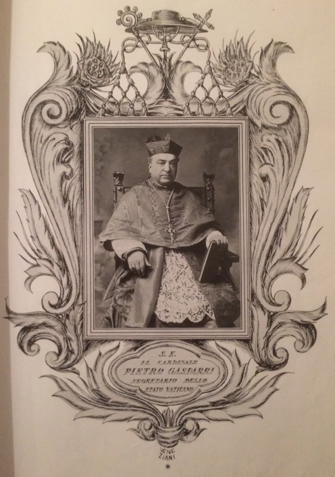 Cardinal Pietro Gasparri: Ritratto d'Epoca Con Fregi Araldici E Illustrazioni Di Veneziani, 1930 Circa
