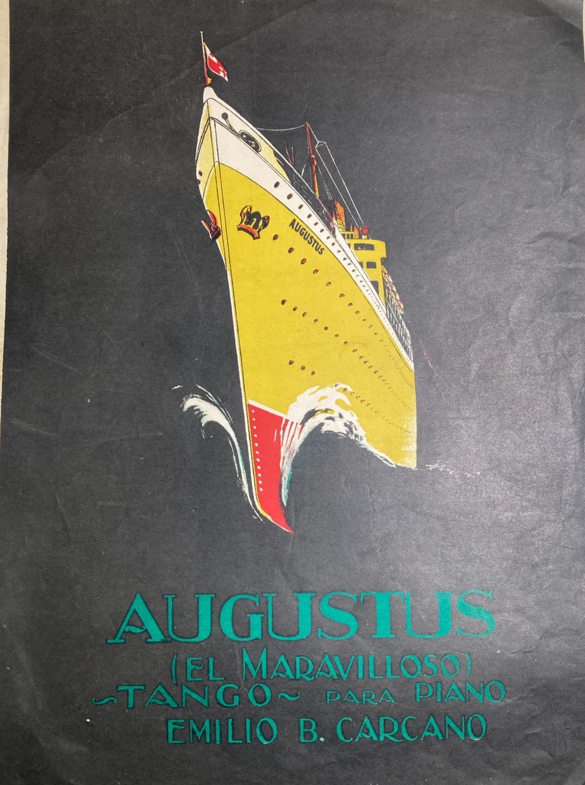 Musica: Tango "Augustus" Di Emilio B. Carcano, Spartito Musicale d'Epoca