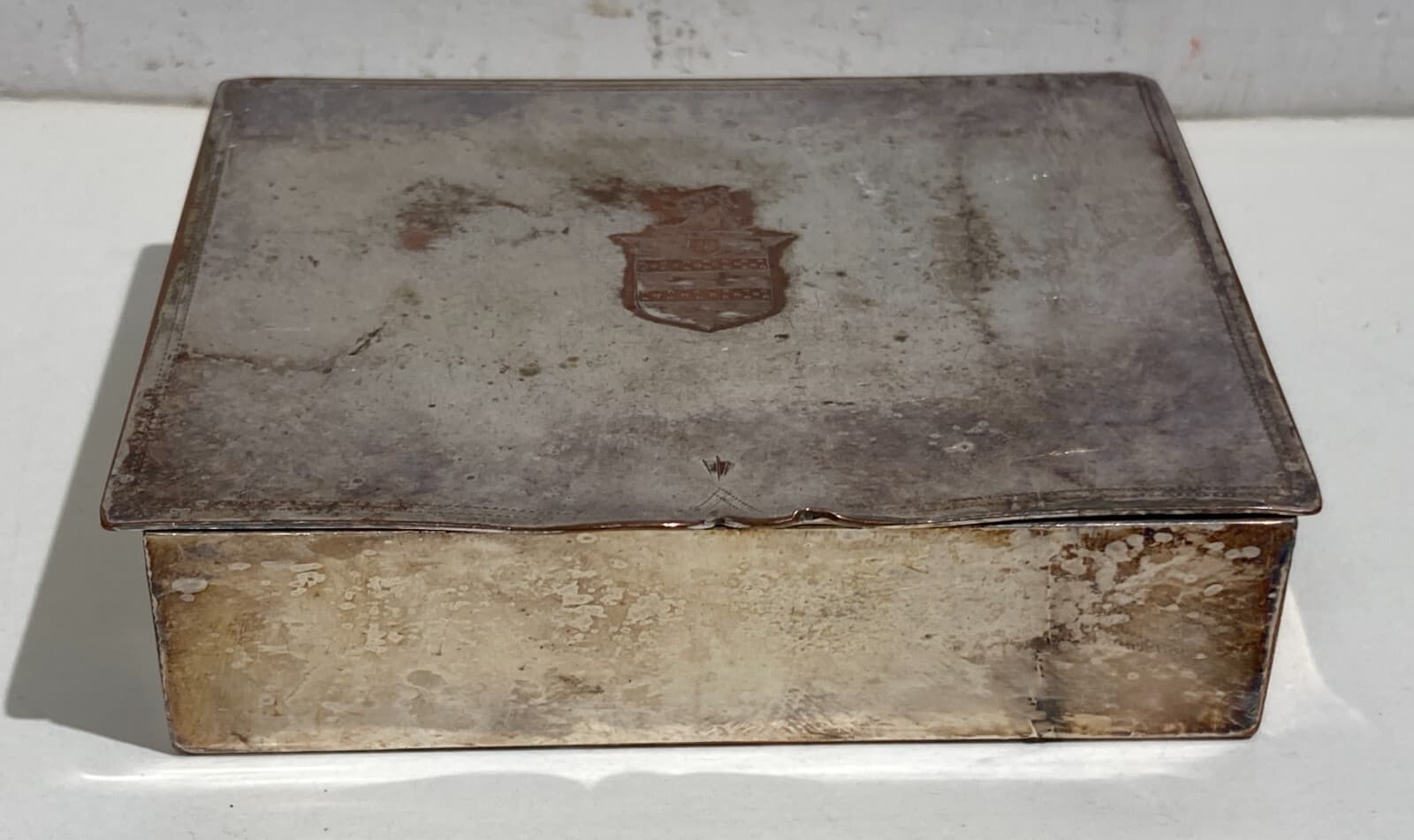 Araldica: Astuccio Decorativo Con Stemma Gentilizio In Metallo Argentato