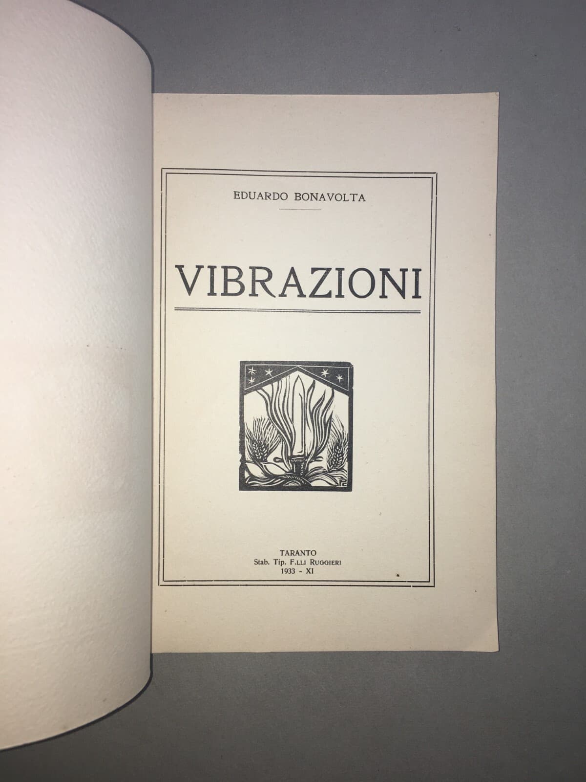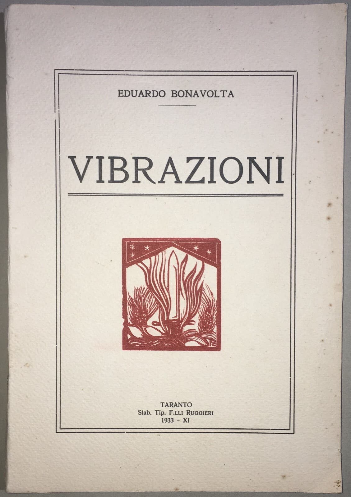 Eduardo Bonavolta, Vibrazioni. Taranto, 1933. Letteratura, Teatro E Militaria.
