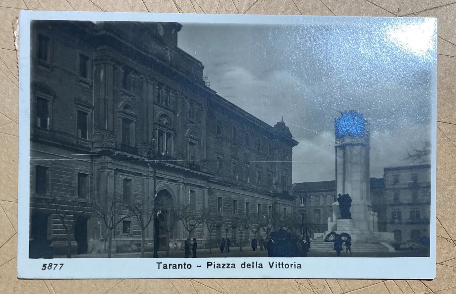 Puglia, Taranto: Animata Veduta Fotografica Di Piazza Vittoria Con Monumento (cartolina)