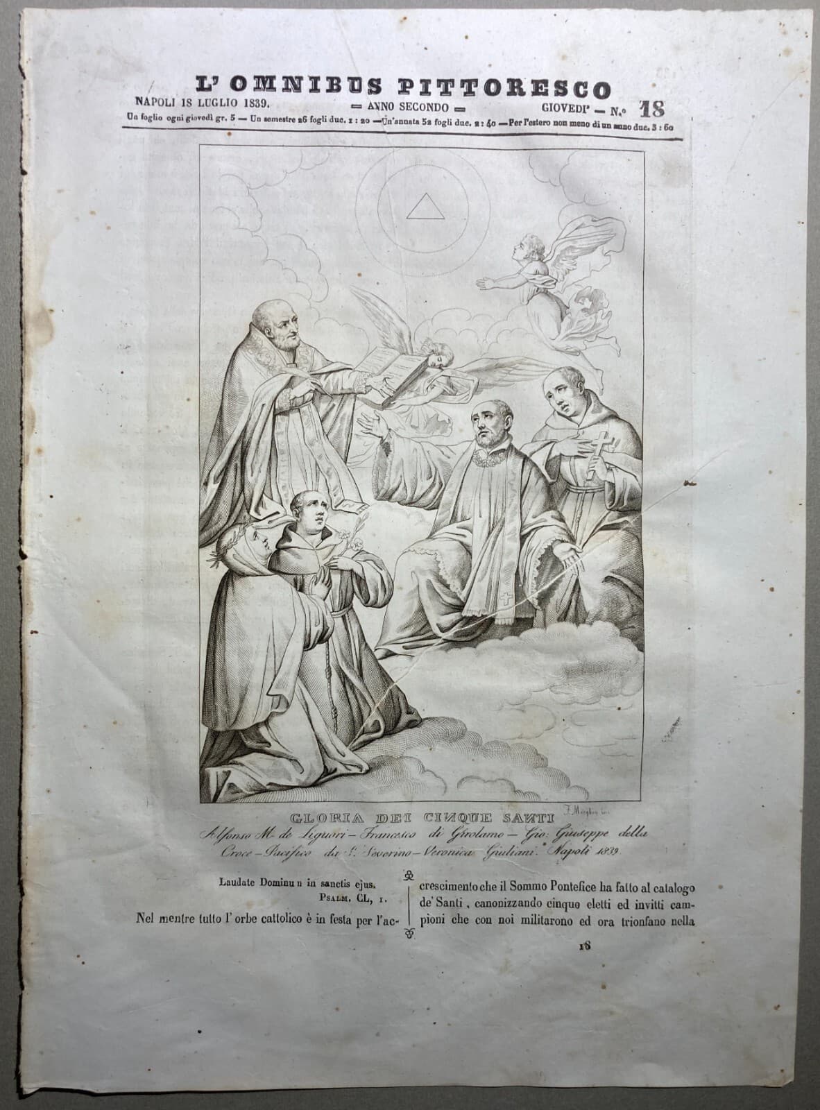 S. Alfonso Maria De' Liguori E Altri Quattro Santi Incisione (1839)