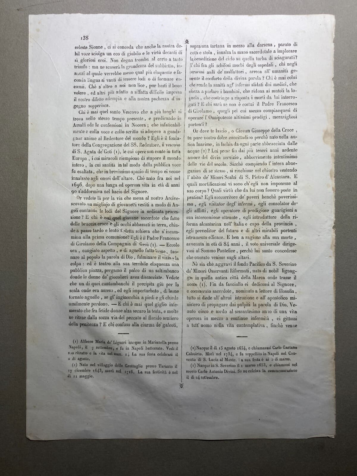 Stampa Popolare Devozionale Di Sant'Alfonso Maria De' Liguori, Napoli, Metà XIX Secolo