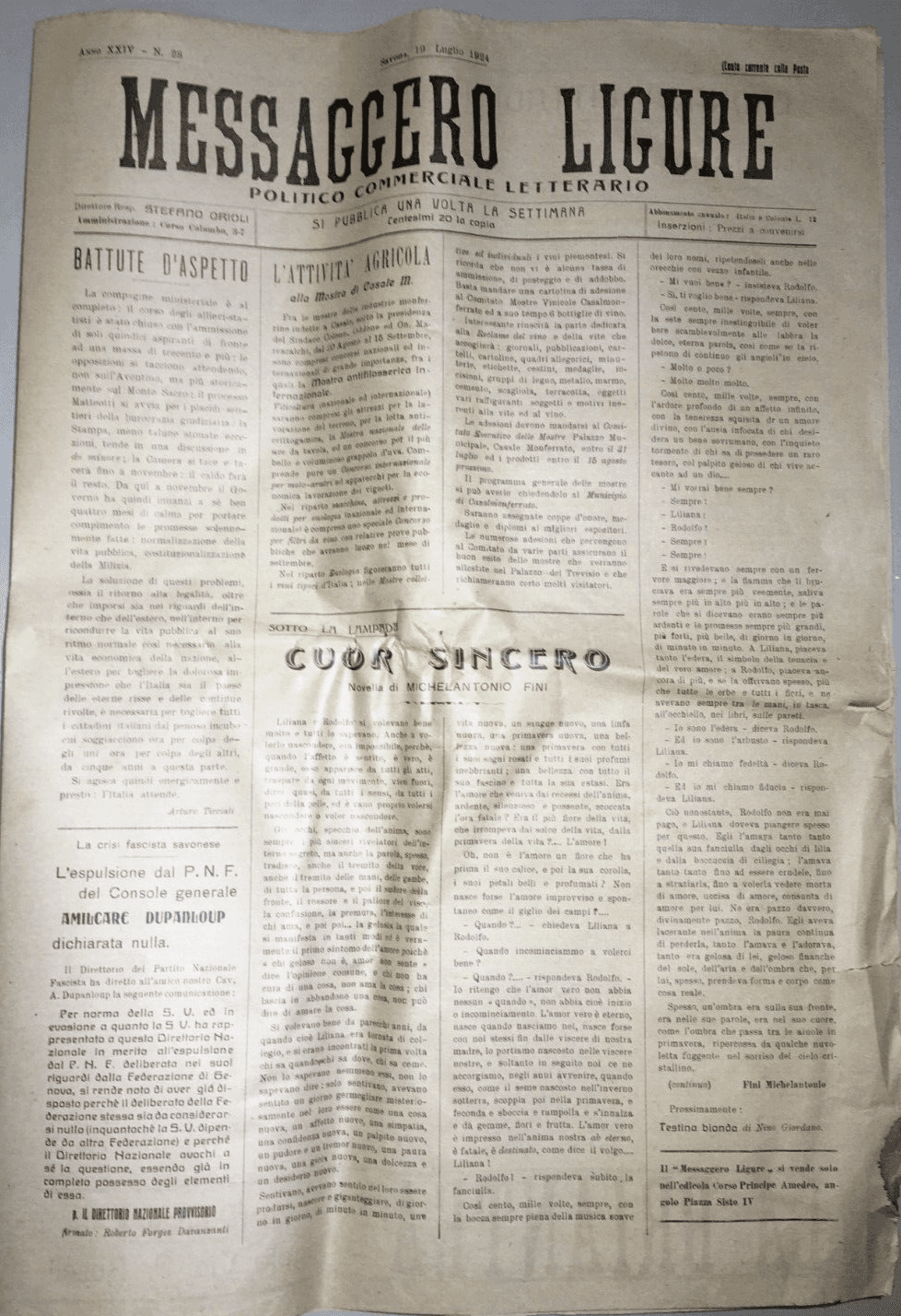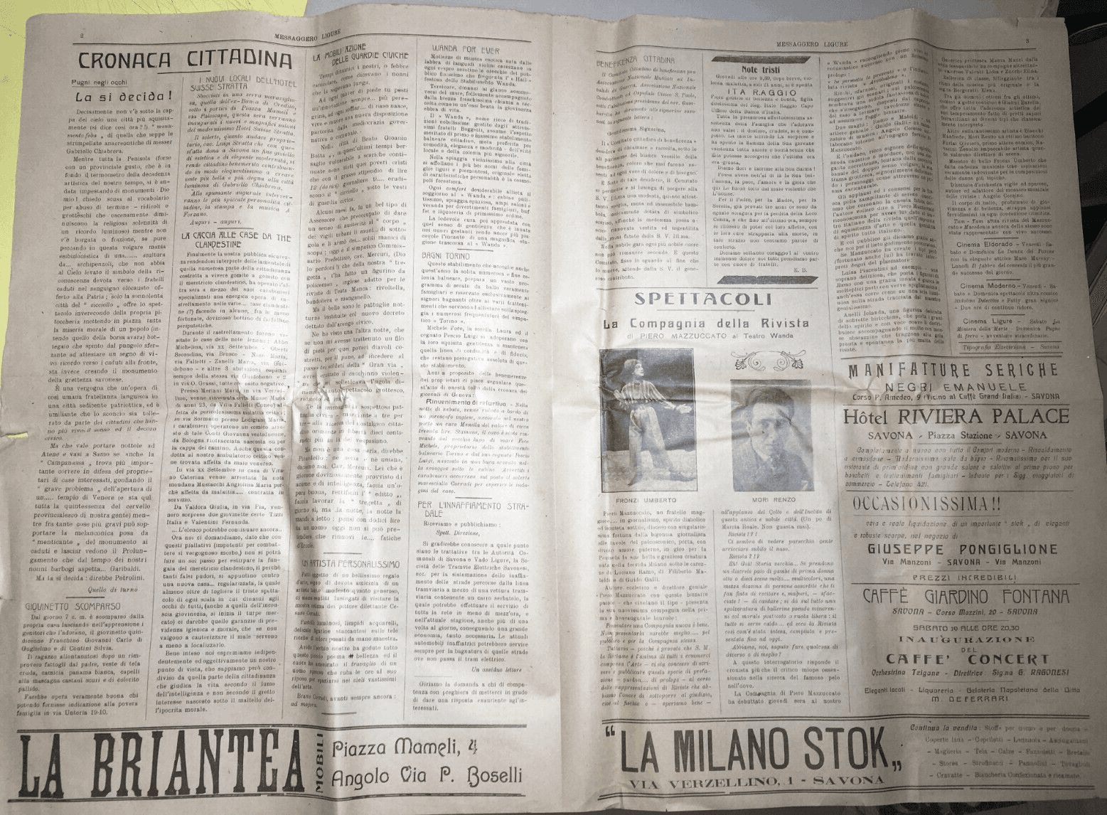 Messaggero Ligure Savona, Stefano Orioli, Fascismo, Teatro E Cinema Giornale 1924