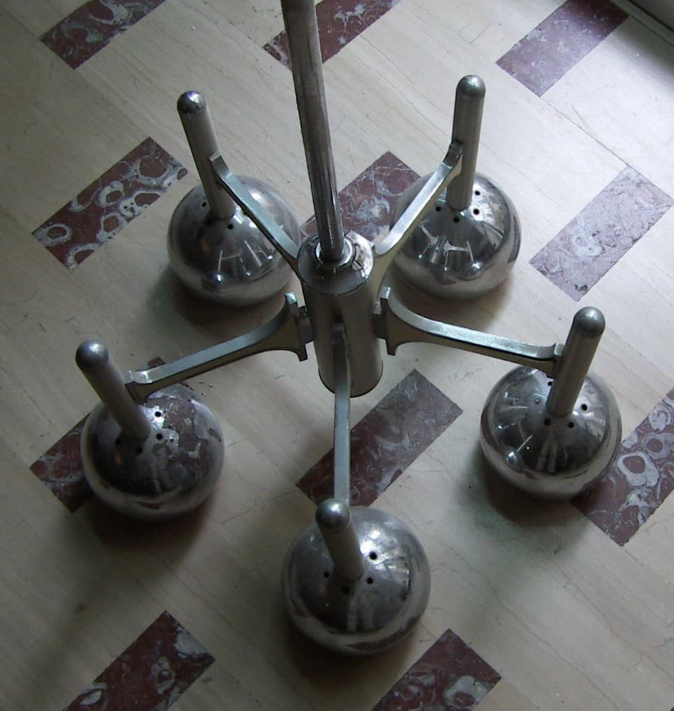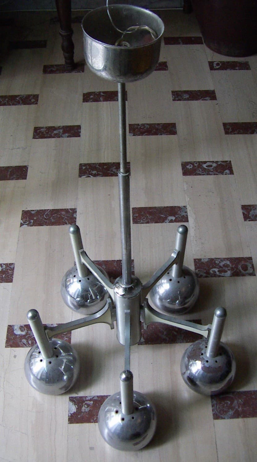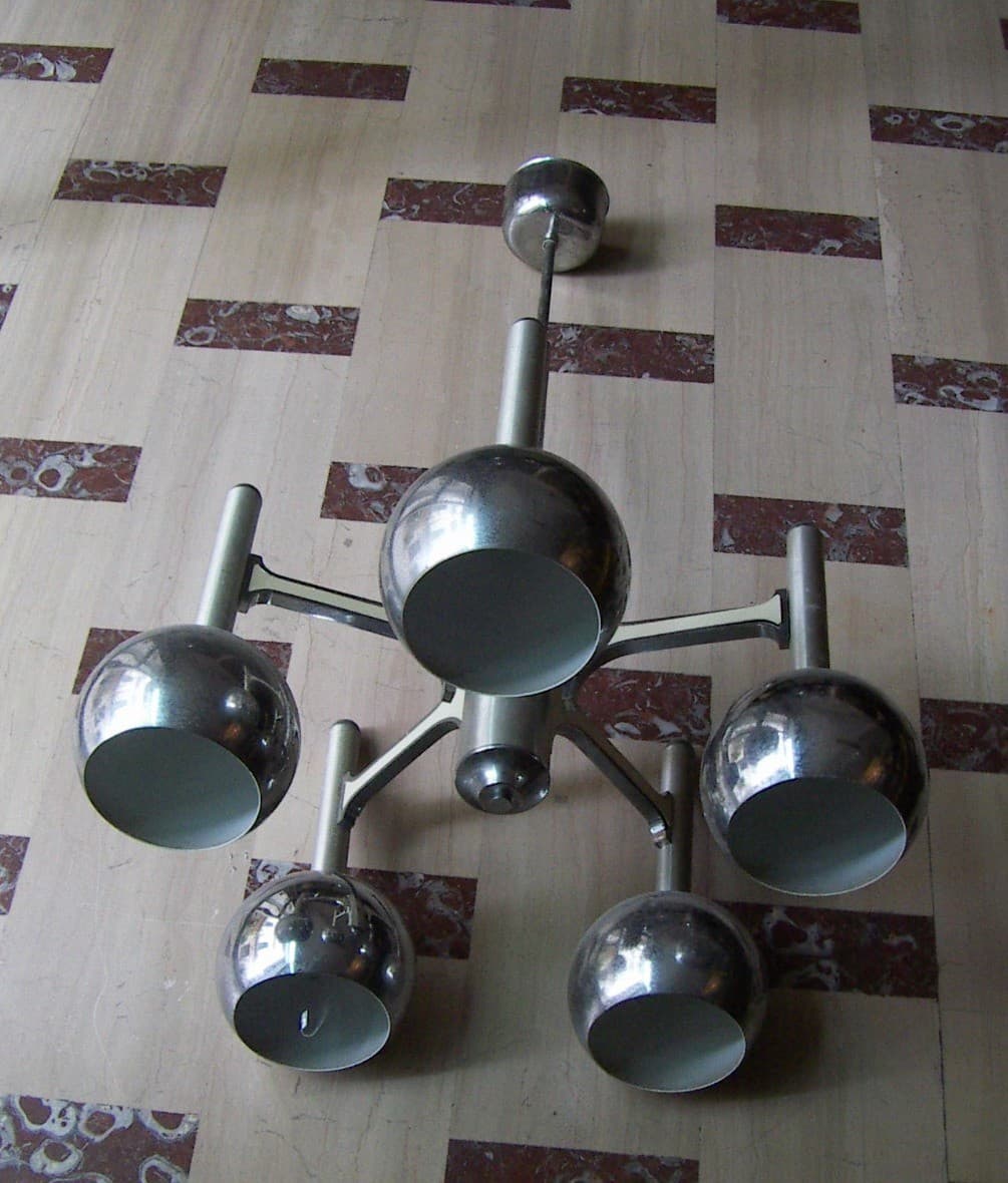 Lampadario Di Design Modernariato Anni '70 In Metallo Cromato, Da Restaurare