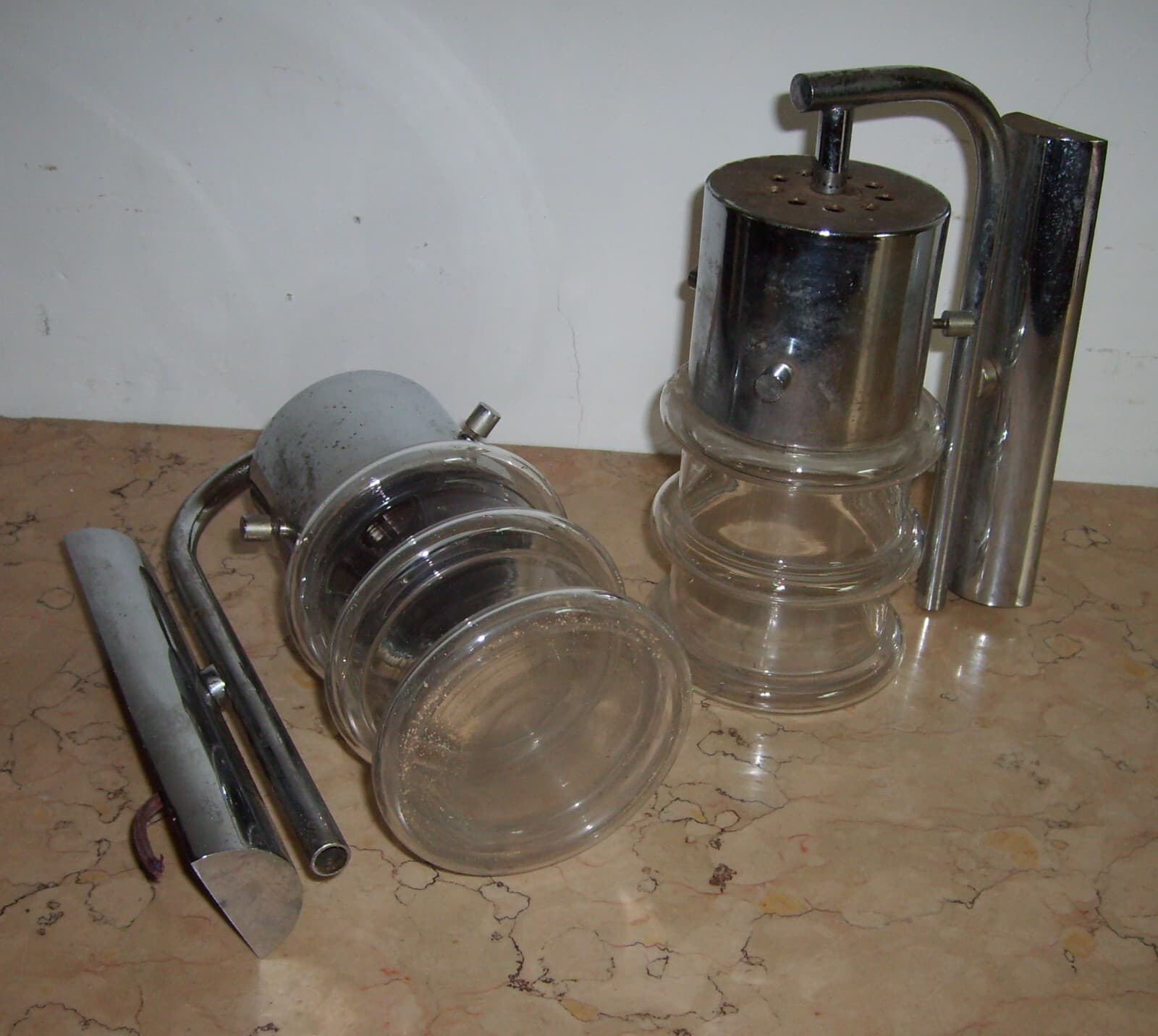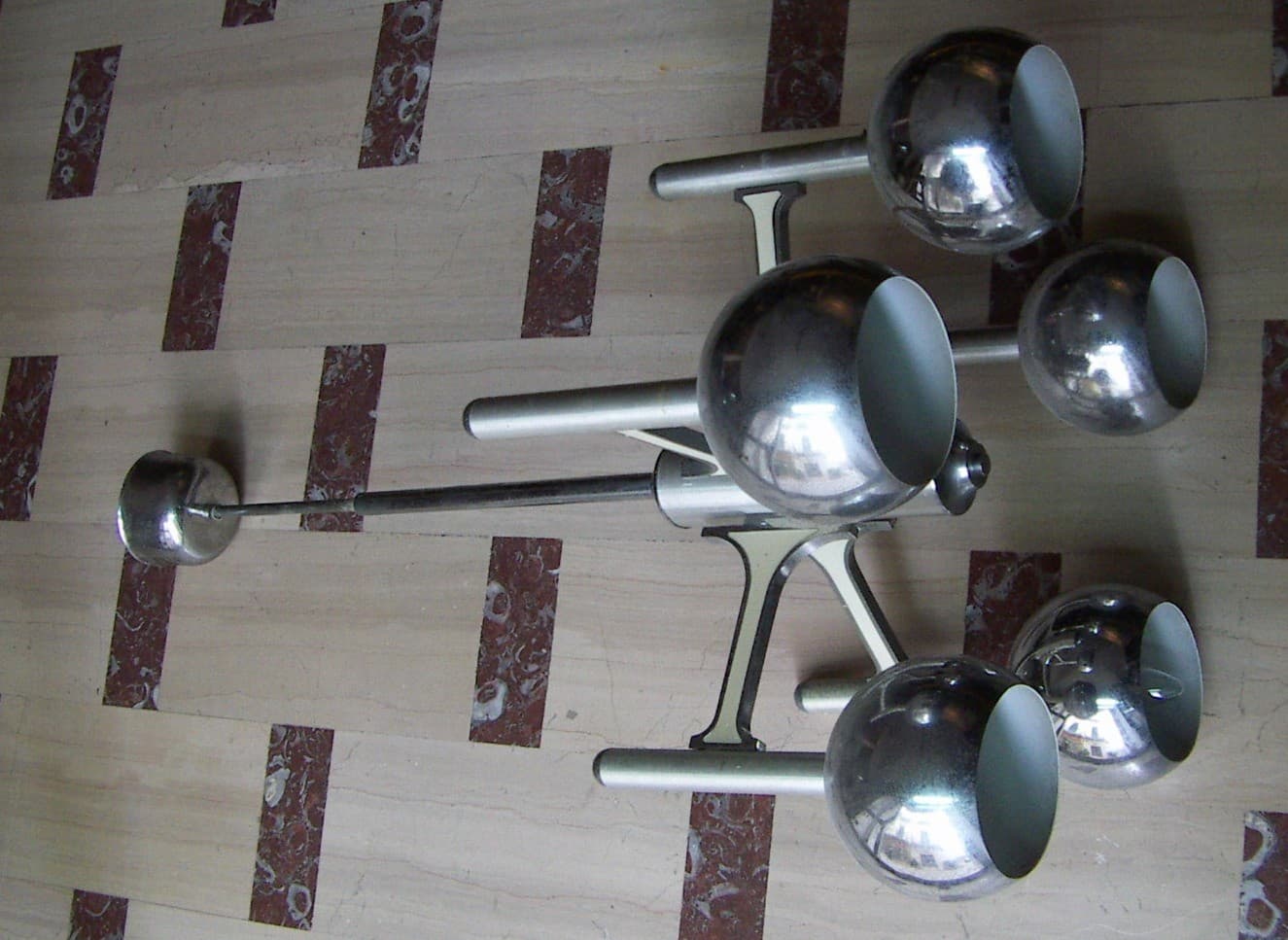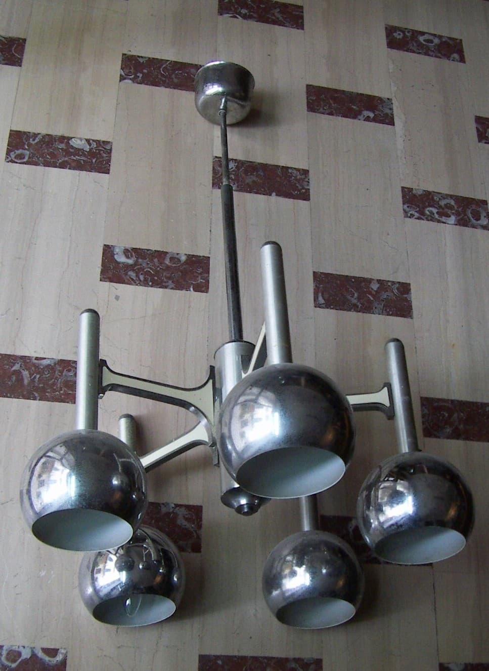 Lampadario Di Design Modernariato Anni '70 In Metallo Cromato, Da Restaurare