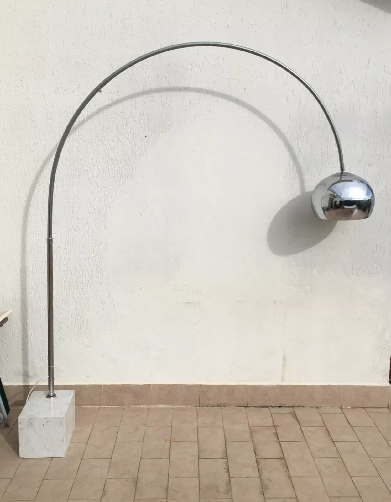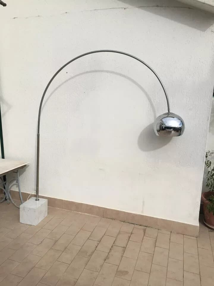 Lampada Ad Arco Cromata Con Base In Marmo