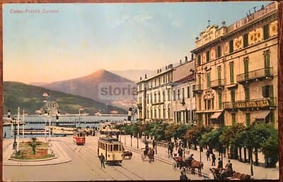 Como: Piazza Cavour, Grand Hotel Volta, Tram E Carrozze. Animata Veduta Antica
