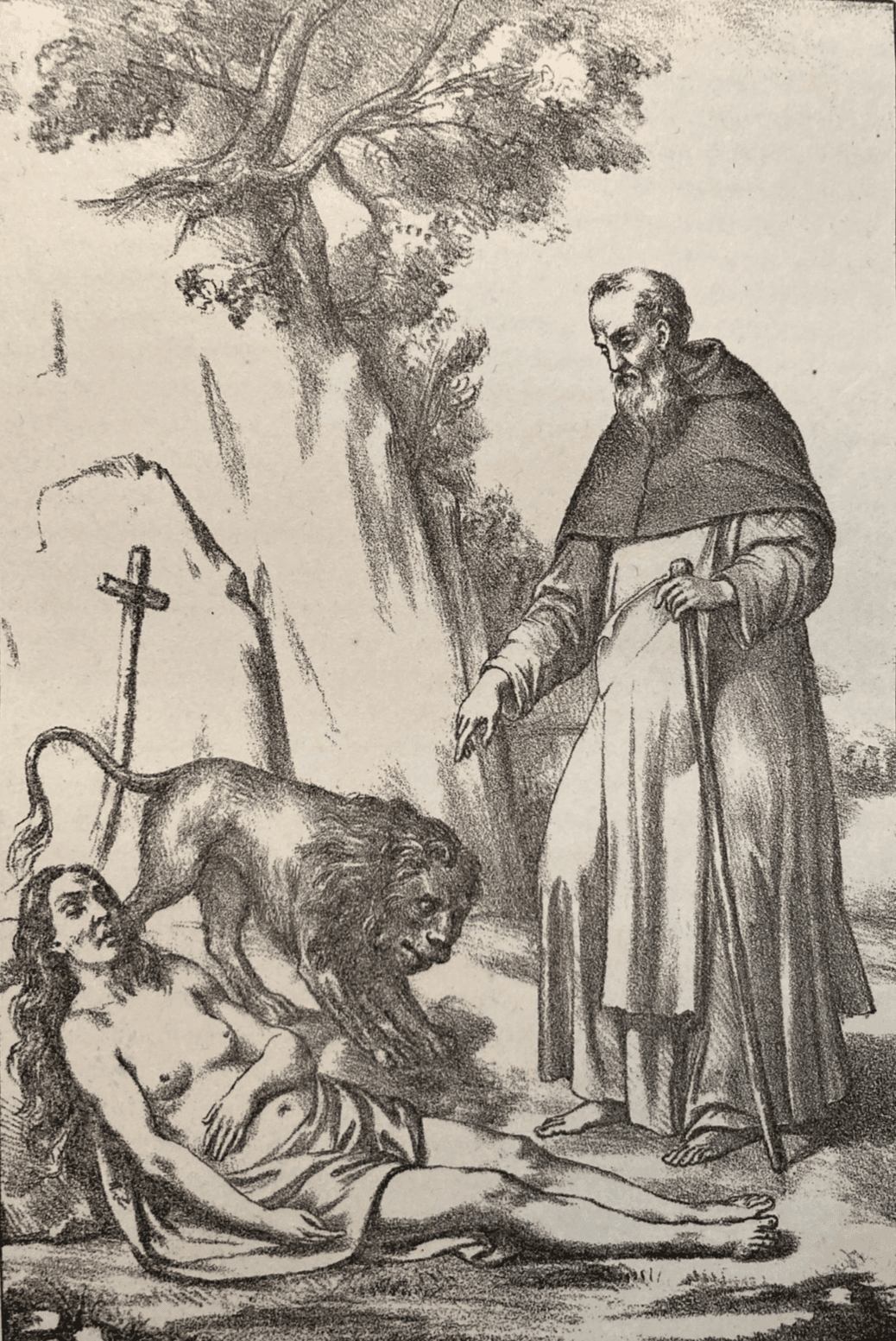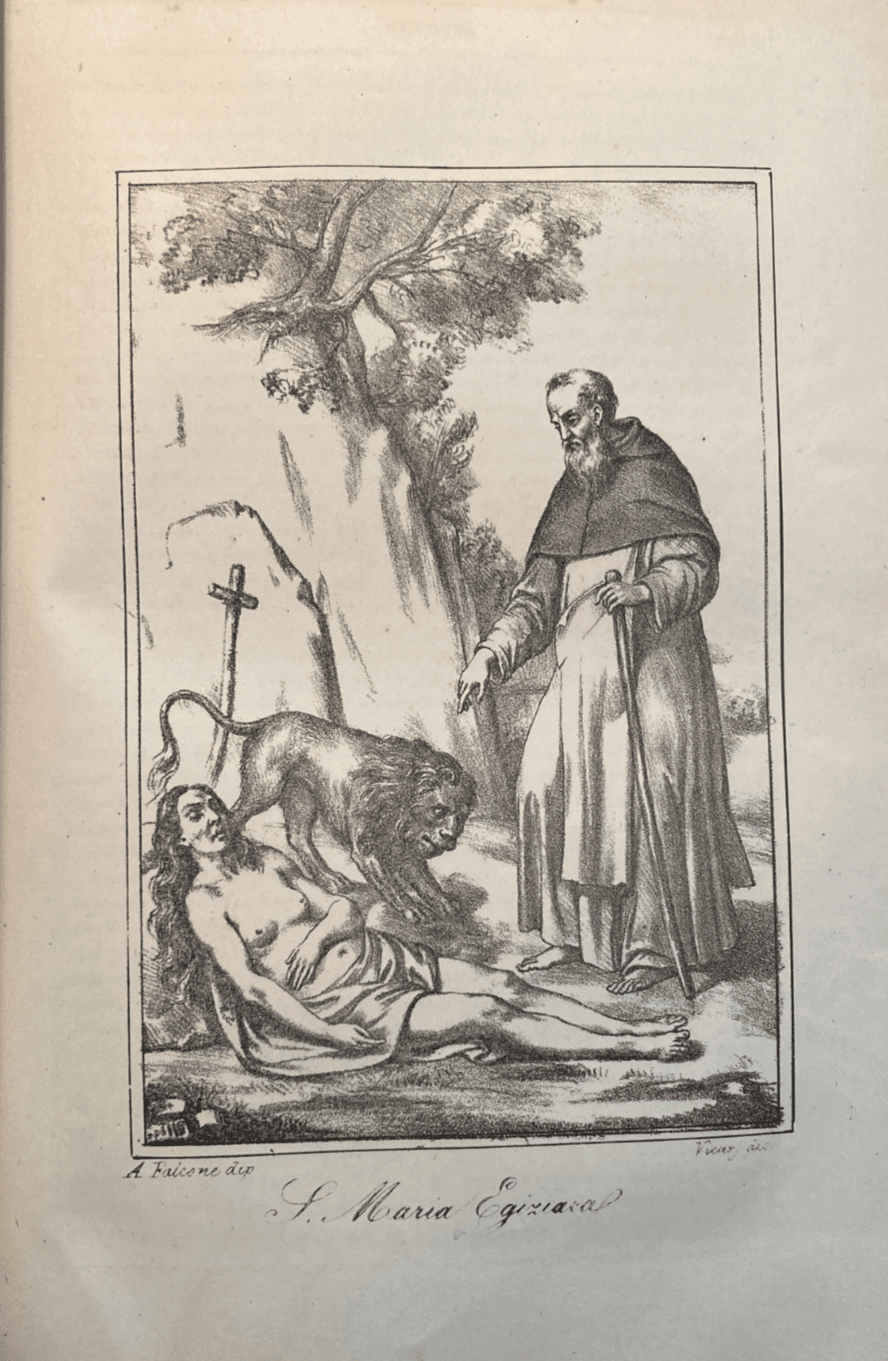 Storia Biblica. S. Maria Egiziaca. Antica Stampa Litografica. Arte. Vicarj. Falcone.