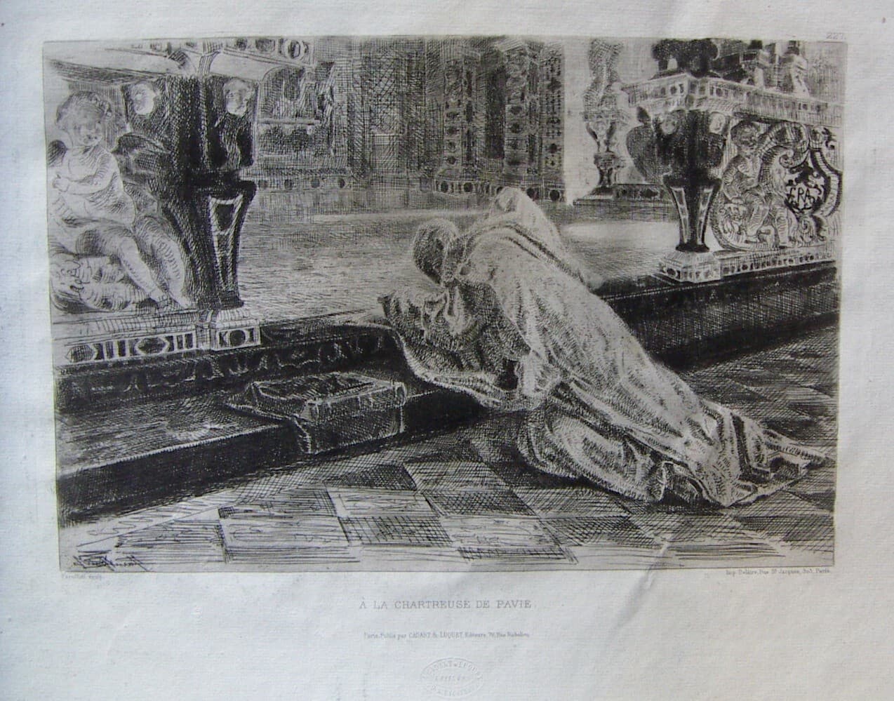 Pavia, Interno Della Certosa. Incisione All'Acquaforte Di Federico Faruffini, 1866