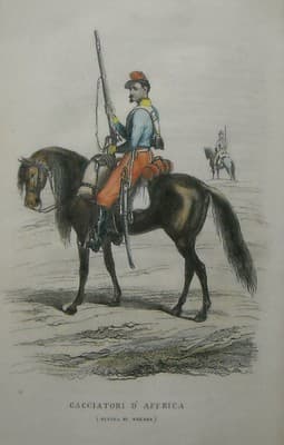 Militaria: Cacciatori d'Africa In Divisa Di Guerra. Litografia Colorata Del XIX Secolo