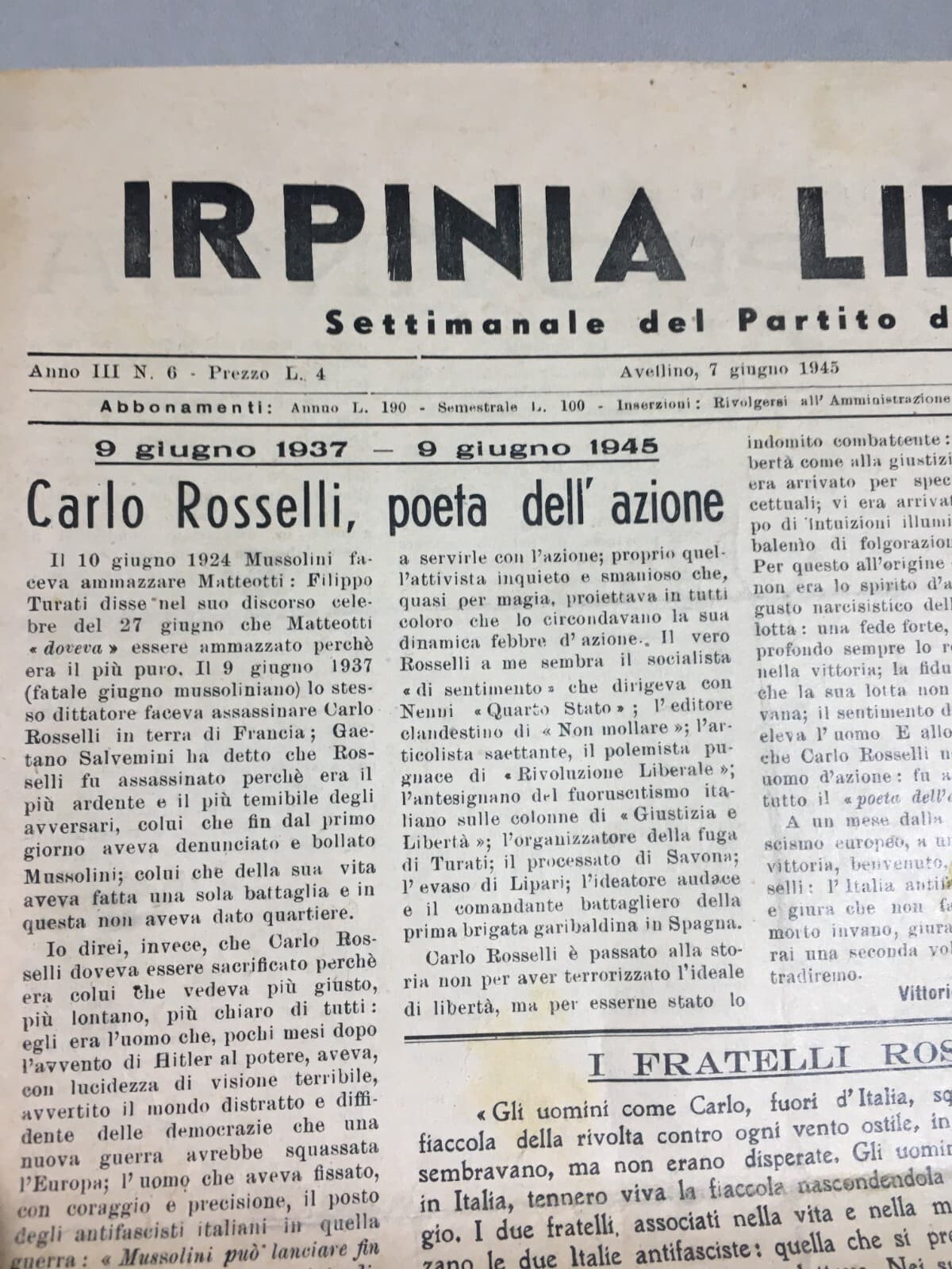 Politica Partito d'Azione Irpinia Libera Carlo Rosselli Scuola Maccanico Cronaca