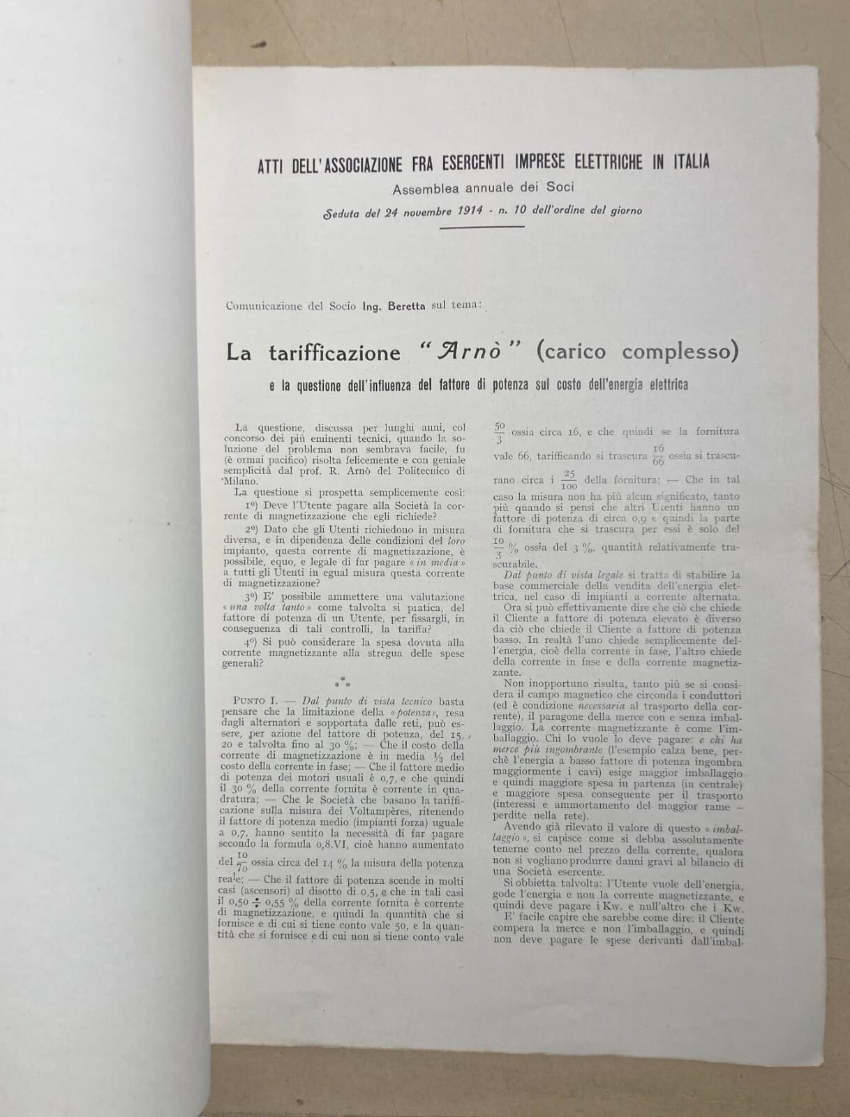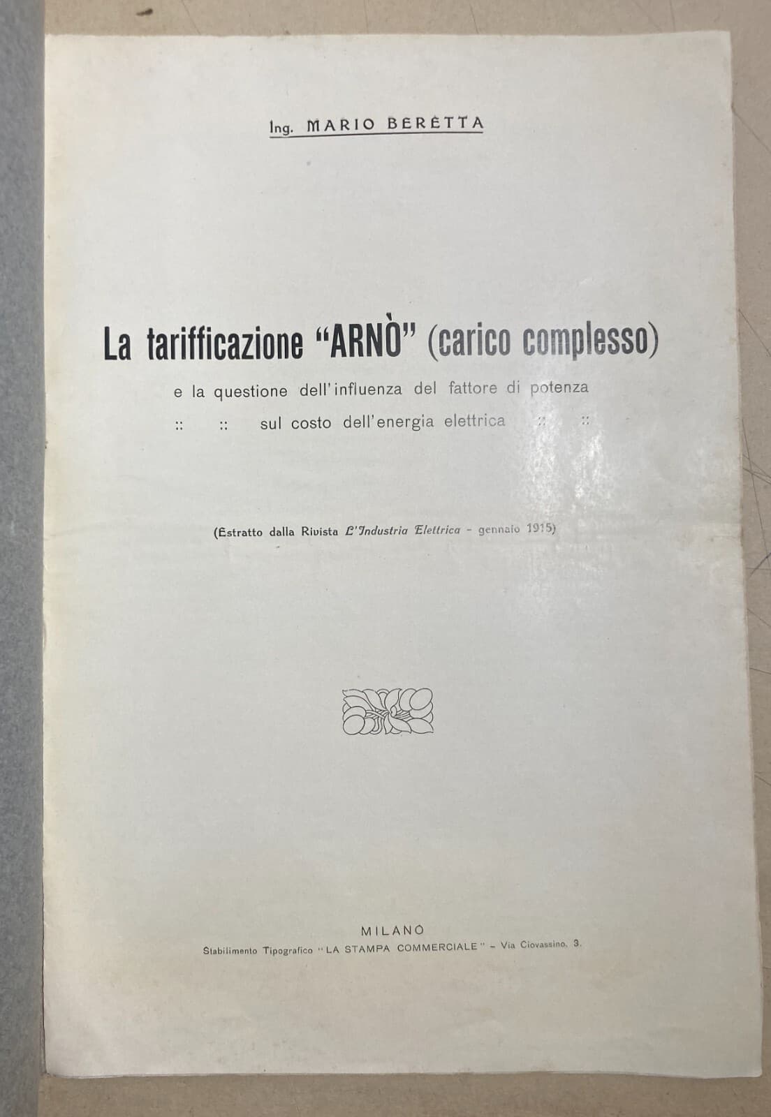 Elettricità, Elettrotecnica E Tarifficazione Arnò: L'Influenza Del Fattore Di Potenza (1915)