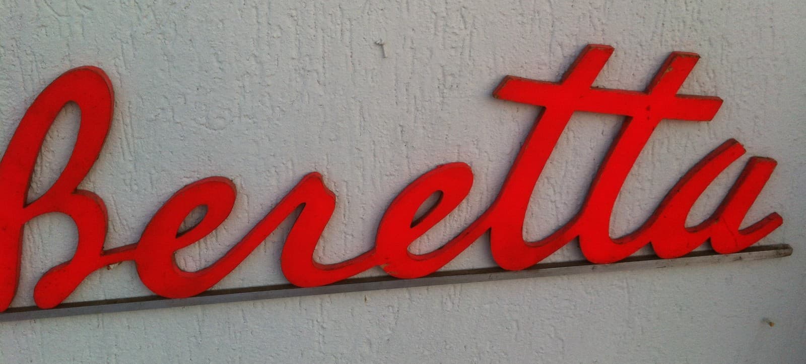 Insegna Pubblicitaria Beretta Per Armerie In Legno Sagomato E Metallo