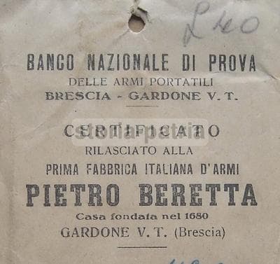 Brescia, Gardone, Sport, Caccia, Beretta, Certificato Di Prova Di Banco