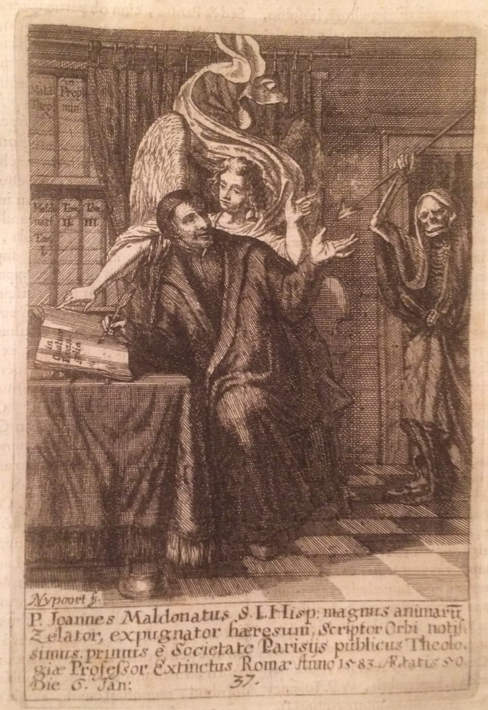 Teologia, Gesuiti Celebri, Spagna: Giovanni Maldonato. Antica Stampa Con Angelo E Libri