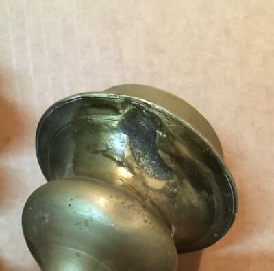Coppia Di Pomoli Antichi In Ottone Della Metà Dell'Ottocento