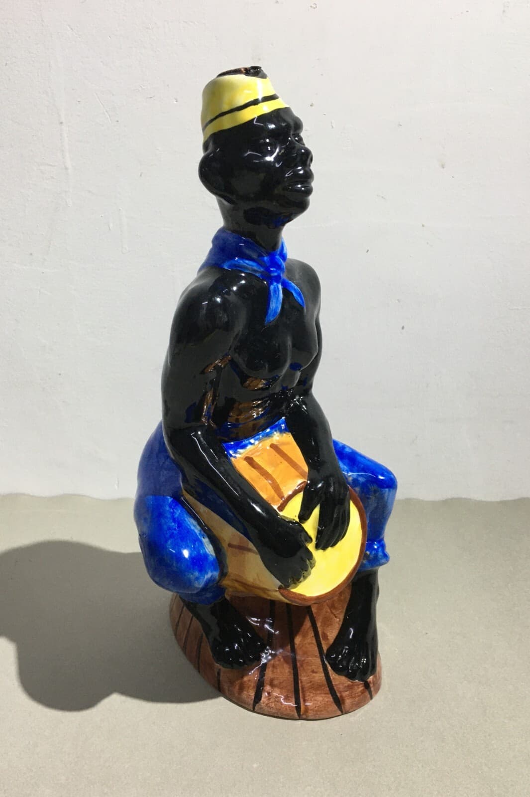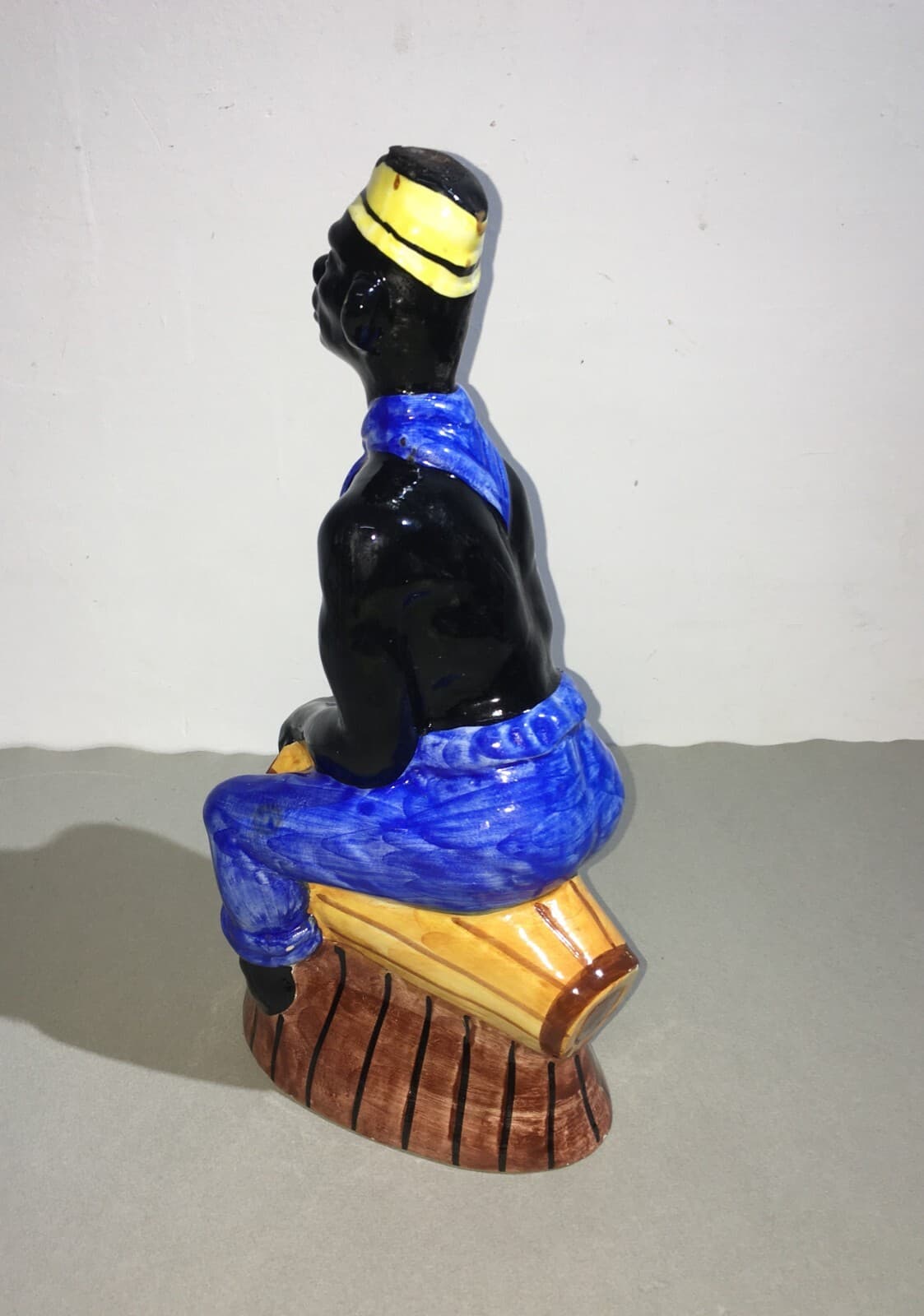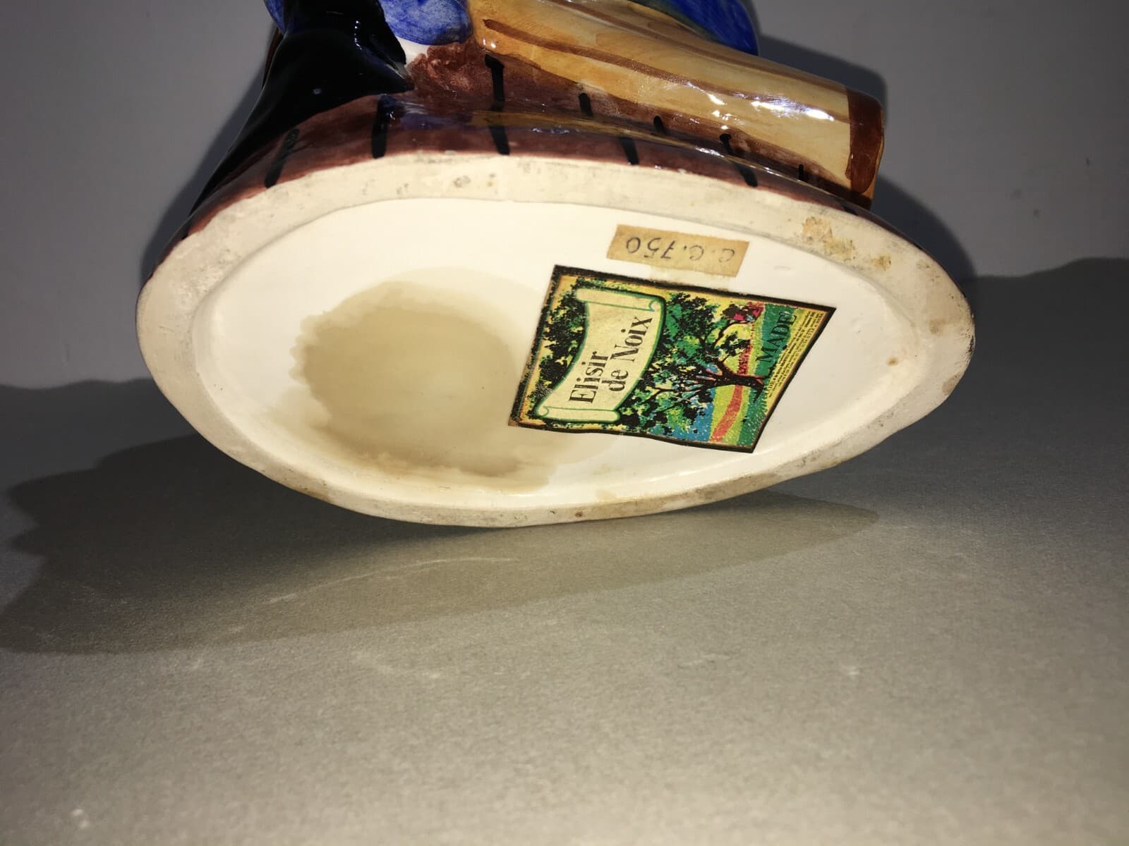 Distilleria Liquori: Bottiglia In Ceramica Con Uomo Di Colore, Elixir De Noix, Metà Del '900