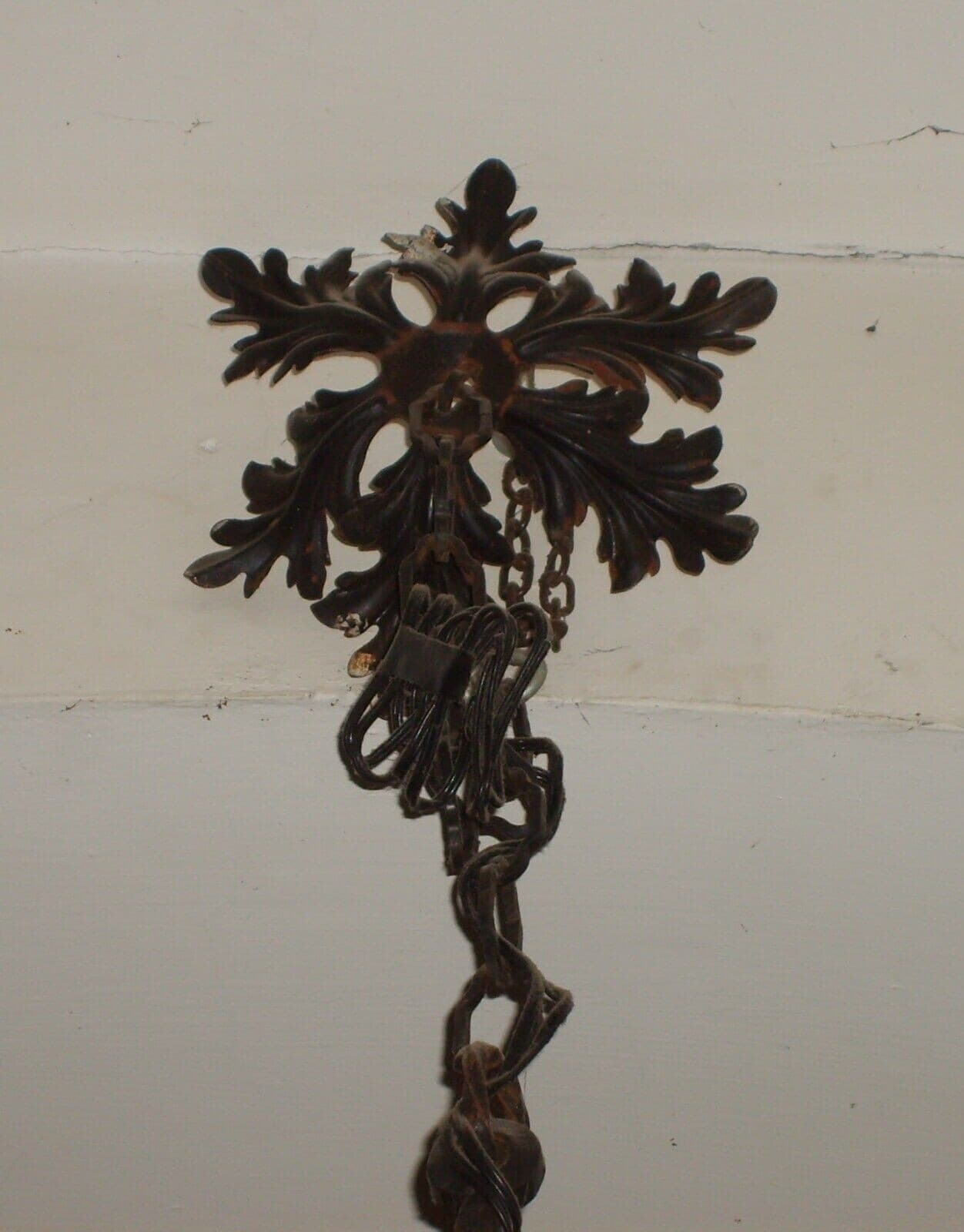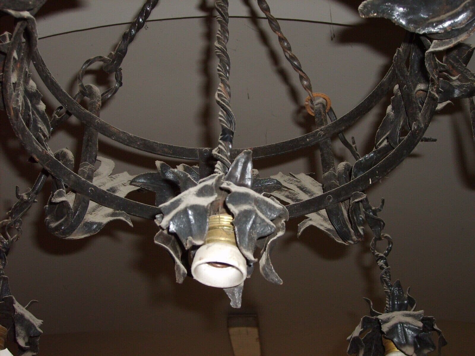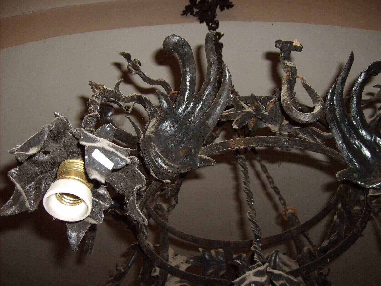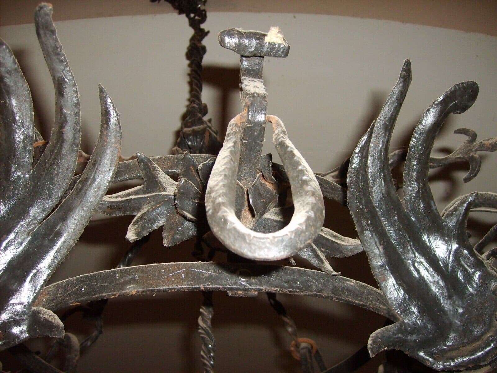 Lampadario Liberty In Ferro Battuto Con Draghi E Motivi Floreali