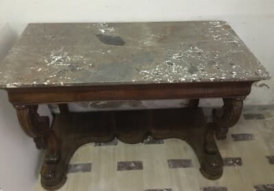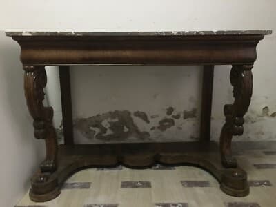 Antica Consolle Da Muro Con Specchiera In Legno Di Noce E Marmo