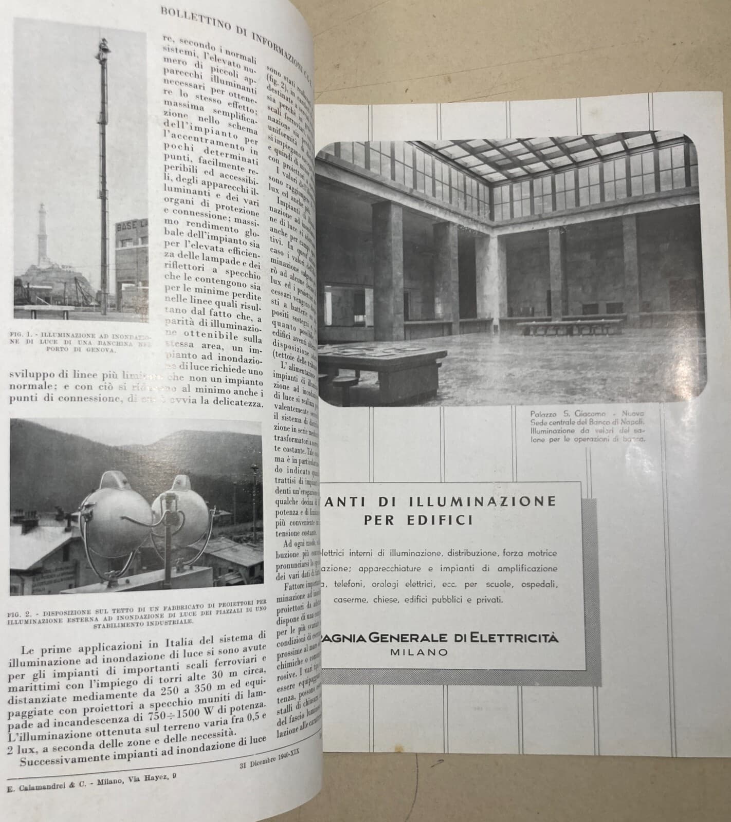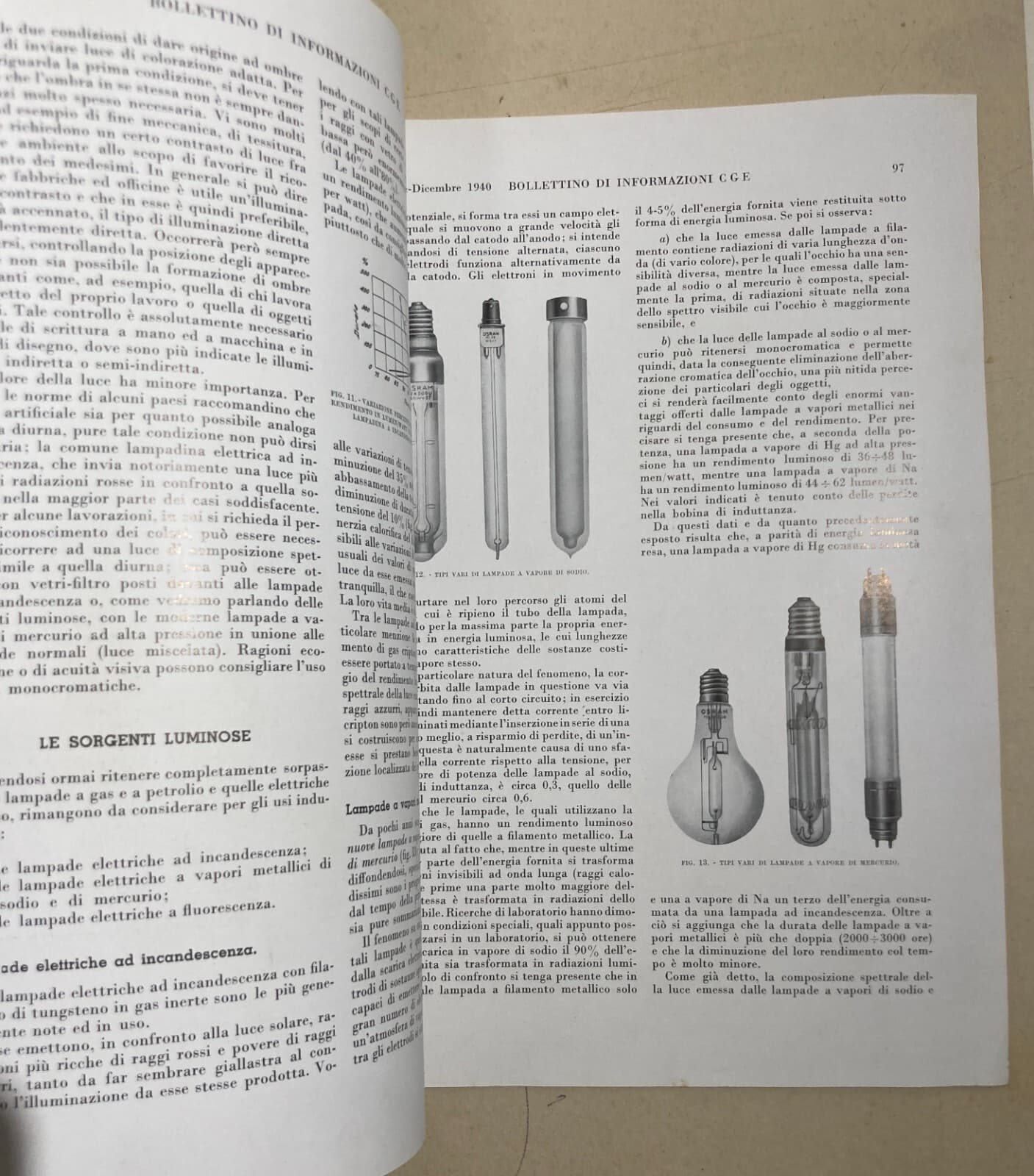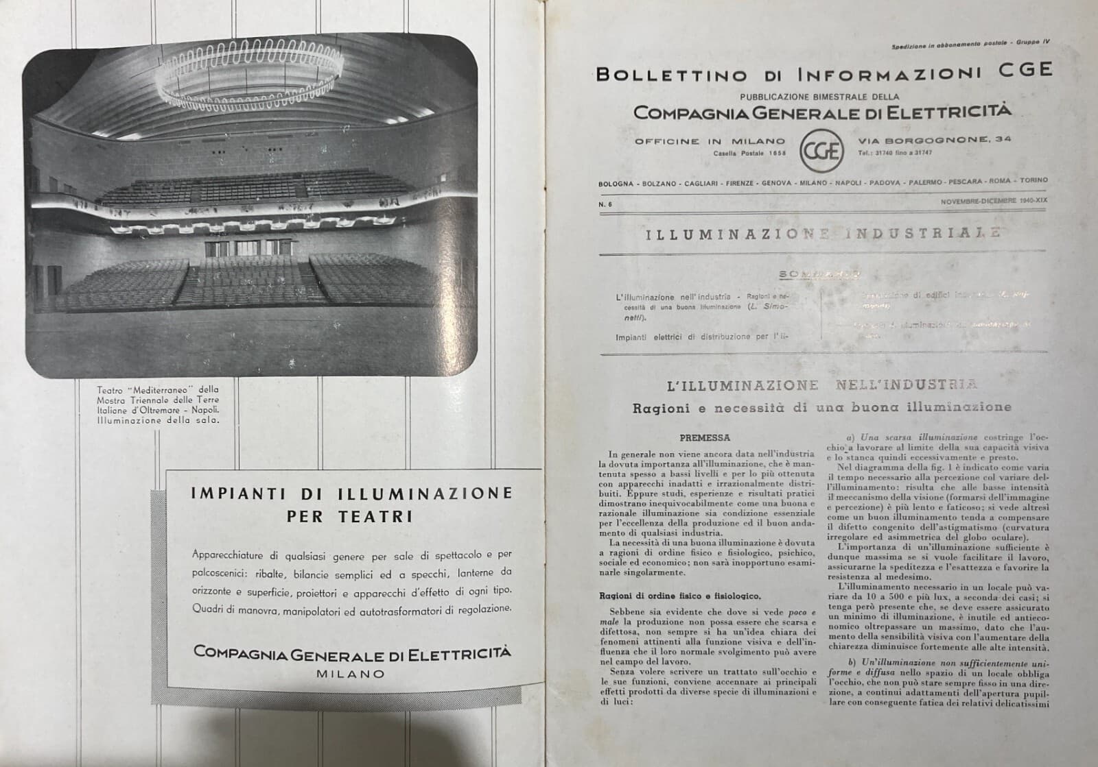 Elettricità, Elettrotecnica, Illuminazione, Lampade: Bollettino CGE Napoli 1940