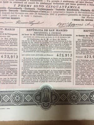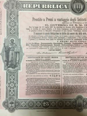 San Marino, Certificato Di Prestito A Premi, Lotteria E Araldica, 1908